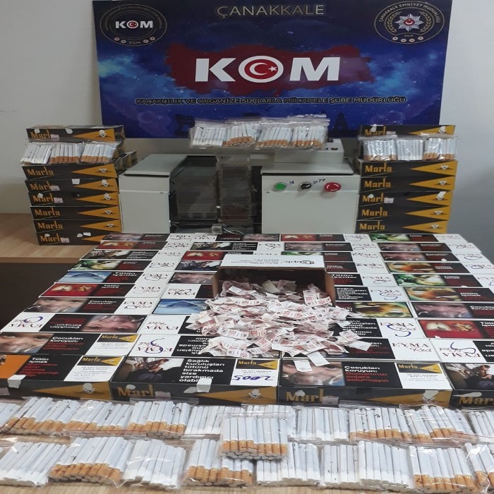 Çanakkale Emniyet Müdürlüğü Kaçakçılık ve Organize Suçlarla Mücadele Şube Müdürlüğünce, Çanakkale’nin Biga ilçesinde faaliyet gösteren Tütün ve Tütün Mamülü satışı yapan bir işyerinde yapılan kontroller akabinde 17040 dal doldurulmuş sigara, mükerrer kullanılmak üzere makaron kutularından sökülmüş 541 adet TAPDK bandrolü ile 1 adet yabancı menşeili gümrük kaçağı elektrikli sigara doldurma makinesine el konuldu, işyeri sahibi M.D. alınan ifadesinin ardından serbest bırakıldı.