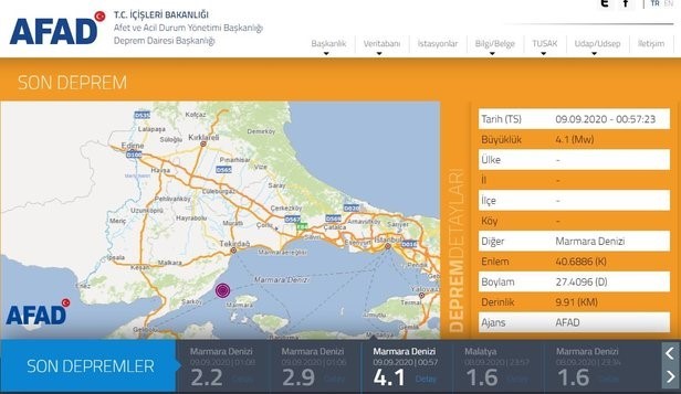 Marmara Denizinin Tekirdağ'ın Şarköy ilçesi açıklarında meydana gelen 4.1 büyüklüğündeki deprem kısa süreli paniğe neden oldu. Tekirdağ'ın Şarköy ilçesi açıklarında saat 00.57'de meydana gelen deprem kısa süreli paniğe neden oldu. AFAD verilerine göre 4.1 büyüklüğünde medyana gelen deprem Tekirdağ'ın birçok ilçesi dahil İstanbul, Edirne, Balıkesir, Çanakkale dahil birçok ilde de hissedildi. Öte yandan 4.1 büyüklüğündeki depremin ardından 01.06'da 3.2 büyüklüğünde bir sarsıntı daha meydana geldi. AFAD'dan yapılan açıklmada "Marmara Denizi'nde Tekirdağ'ın Şarköy ilçesi açıklarında saat 00.57'de 4,1 büyüklüğünde bir deprem meydana geldi. Gelişmeleri takip ediyoruz. Geçmiş olsun Tekirdağ. Şarköy ilçesi açıklarında meydana gelen 4,1 büyüklüğündeki deprem sonrası, an itibarıyla, olumsuz bir ihbarın bulunmadığı bilgisi alınmıştır." ifadeleri yer verildi.
