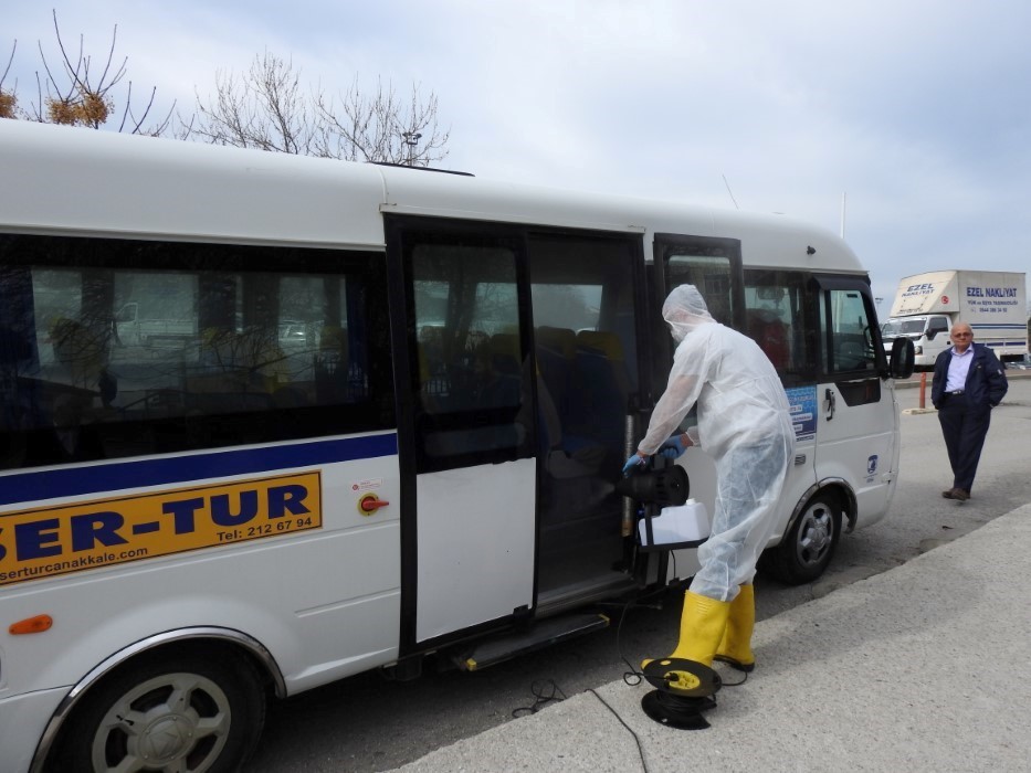 İlk olarak Çin’ de görülen ve önce Çin’ de ardından da Uzakdoğu’ nun bir çok ülkesine yayılan, son olarak da İtalya, Amerika,  ve Avrupa ülkelerinde görülmeye başlayan korona virüsü yayılmaya insanlığı tehdit etmeye devam ediyor. Şuana kadar 3 bin 800’ den fazla ölümün gerçekleştirdiği salgında sağlık bakanlığı salgının Türkiye’ ye sıçramaması için çalışmalarını sürdürüyor. Sağlık Bakanlığı Korono virüsü ile ilgili önlemleri almaya ve tartışmaya devam ederken özellikle virüsün hızla yayılabileceği  toplu taşıma araçları da ilaçlanarak  sterilize edilmeye başlandı. Çanakkale’de de, Çanakkale Esnaf ve Sanatkarlar Odaları Birliği ve Çanakkale Şoförler ve Otomobilciler Odası işbirliği ile köprü başında bulunan köy minibüsleri ve okul servisleri virüslere karşı ilaçlandı. Köprü başında köy ve okul servislerinin olduğu alanda sıraya giren Korono virüsü ve diğer salgın hastalara minibüsleri  tek tek ilaçlanarak sterilize edildi. Yapılan ilaçlama çalışması ile ilgili bilgiler veren Çanakkale Esnaf ve Sanatkarlar Odası Başkanı Ünal Özcan “ 2020 yılının ilk günlerinden itibaren, dünya genelinde bir gündem  var. Nedir bu gündem hızla bulaşmaya ve yayılmaya devam eden Korona virüsü. Korono virüsü ile ilgili insanlarda bir şüphe var. Türkiye’nin bütün komşularında korona virüsü vakaları görüldü. Bu konuda herkes bir şeyler yapmaya çalışıyor, sağlık bakanlığımızın da bu konuda açıklamaları var. Biz esnaf teşkilatı olarak, 1 hafta önce yaptığımız Esnaf Odaları Yönetim Kurulu toplantısında konuyu değerlendirerek, özellikle insan sirkülasyonunun yoğun olduğu toplu taşıma araçlarında, bunun yayında kahvehane, kafe, lokanta ve benzeri yerler, insanların birebir temasta bulunduğu  iş yerlerinde ne yapılabilir, şu andaki durumun hassasiyetini de düşünerek, özellikle sık aralıklar ile vatandaşların ve öğrencilerin taşındığı minibüsler’ den tutun da her yerde bu hijyenik temizliye öncülük yapmak istedik. Bu çalışmayı il genelinde esnaf odaları birliğinden genelge çıkararak üyelerin uyarılması, bu konuda eğitim ve bilgilendirici çalışmalar yapılması istedik. Şoförler odamız bu konuda öncülük yaptı kendilerini kutluyorum ve teşekkür ediyorum, çalışmaya ilk olarak toplu taşıma araçları ile başladılar. Bu taksilerde ve diğer araçlarda da devam edecek. Umarım bir katkımız bir faydamız olur. “ dedi.  Özcan’ ın ardından açıklama yapan Çanakkale Şoförler ve Otomobilciler Esnaf Odası Başkanı Mehmet Ali Demir “ Korona virüsü tüm dünya da etkili olmaya ve hızla yayılmaya devam ediyor. Bizde toplu taşıma yaptığımız araçlarımızda olası bir virüs salgının yayılmasına çok müsait olduğu için böyle bir ilaçlama ile sterilizasyon yapıyoruz. Köy minibüsleri ve okul servisi taşımacılığı yapan üyelerimizde bu konuda çok hassas olduklarını gösterdiler. Bu anlam da kendilerine de teşekkür ediyorum. Sürekli devam edeceğimiz bu çalışmanın Çok önemli ve gerekli olduğunu düşünüyorum. Toplu taşıma araçlarına binen, okullarına gitmek için servislerine binenler gönül rahatlığı ile minibüslerinde seyahat edebilecekler. “ dedi.