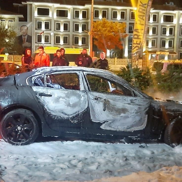 Bu akşam saatlerinde Çanakkale İçdaş Yelken Kulübü'nün hemen yanında bulunan bir restoranın önünde, park halinde bir araç alev aldı. Çanakkale Belediyesi İtfaiye Ekipleri hızla olaya müdahale ederek, yanan aracı söndürdü. Ancak kısa sürede tüm aracı saran alevler nedeni ile lüks araç kullanılamaz hale geldi. İtfaiye ekipleri yanan araca müdahale ederken alevler yükselince kısa süreli panik yaşandı. Emniyet kuvvetleri yanan aracın patlama olasılığa karşı tedbir alırken yanan aracı soğutma çalışmaları bir süre devam etti. Araç kullanılamaz hale geldi.