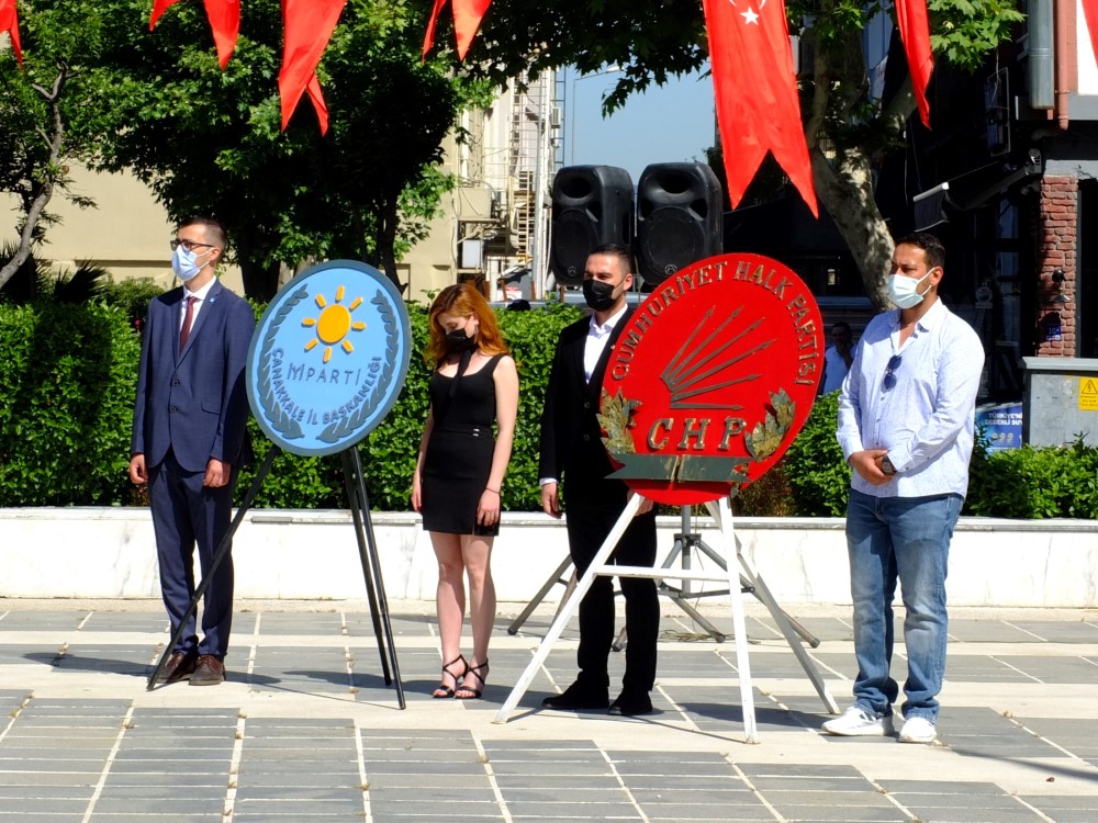 19 Mayıs Atatürk’ ü Anma Gençlik ve Spor Bayramı Nedeni ile Türkiye’nin Dört bir tarafında olduğu gibi Çanakkale’de de düzenlenen tören ile kutlandı. Cumhuriyet Meydanında düzenlenen ve Pandemi nedeni ile az katılım ile gerçekleştirilen 19 Mayıs Resmi Töreni’ nin ardından Millet İttifakını oluşturan Cumhuriyet Halk Partililer, İyi Partililer ve Demokrat Partililer alternatif 19 Mayıs töreni düzenlediler. Törene Çanakkale Belediye Başkanı Ülgür Gökhan, CHP İl Başkanı Metin Ümit Ural, CHP Çanakkale Merkez İlçe Başkanı Ali Uyanık, İyi Parti Çanakkale İl Başkanı Selahattin Yıldızlar, İyi Parti Çanakkale Merkez ilçe Başkanı Necati Gabran, Demokrat Parti Çanakkale İl Başkanı Nail Babacan ve millet ittifakını oluşturan siyasi partilerin gençlik kolları üyeleri, Kadın Kolları üyeleri ve üyeler katıldı. Törende ilk olarak Cumhuriyet Halk Partisi’nin çelengi Atatürk Heykeline sunulurken ardından İyi Parti çelenginin sunumu yapıldı. Çelen sunumlarının ardı9ndan Günün anlam ve önemini belirten konuşmayı Millet ittifakını oluşturan siyasi partiler adına Cumhuriyet Halk Partisi Çanakkale İl Başkanı Metin Ümit Ural yaptı. Ural konuşmasında “ İstanbul’dan hareket Eden Gazi Mustafa Kemal Atatürk, bu hareketten üç gün sonra 19 Mayıs 19191’da samsuna ayak bastılar. İşte her şey 19 Mayıs 1919’da başladı. Ülkenin zor durumda olduğu koşullarda Öncelikle Amasya, Erzurum ve Sivas Kongreleri yapıldı. Türkiye Büyük Millet Meclisinin oluşturulmasıyla, Laik Cumhuriyetin temelleri atıldı. 19 Mayıs 1919’dan sonra oluşan bu bayram şöleni, öncelikle Samsun’da kutlanıyordu ve 1935 yılında bu tarih Ulusal Bayram ilan edildi. Bu Bayramın Atatürk’ü Anma Gençlik ve Spor Bayramı olarak ilan edilmesi ile birlikte tüm ülkede o günlerin anısına, o günlerin mücadele hırsına ayak uydurarak kutlanmaya başlandı. Ama maalesef günümüzde çok çeşitli düşünceler doğrultusunda, ülkenin savunulması doğrultusunda bu günlere geldik. Heyecanla kutladığımız bayramları maalesef şimdi sönük kutluyoruz” dedi.