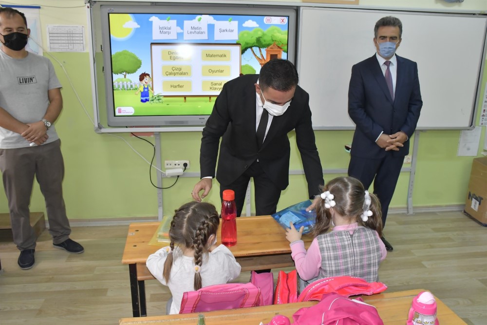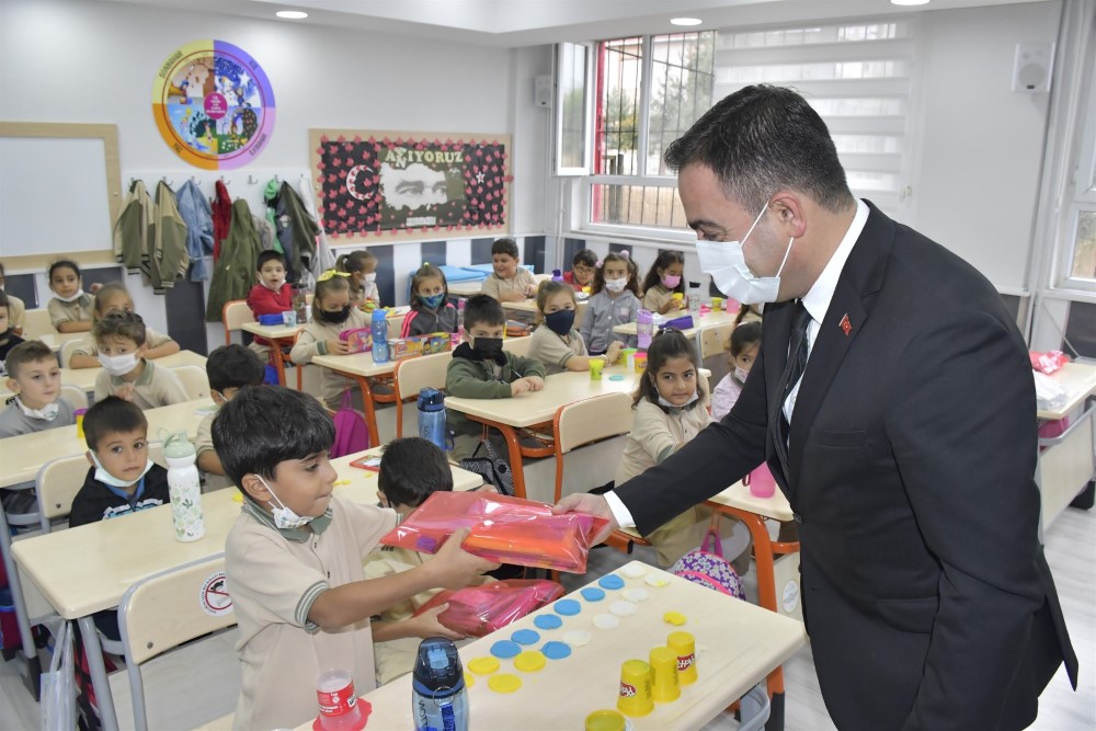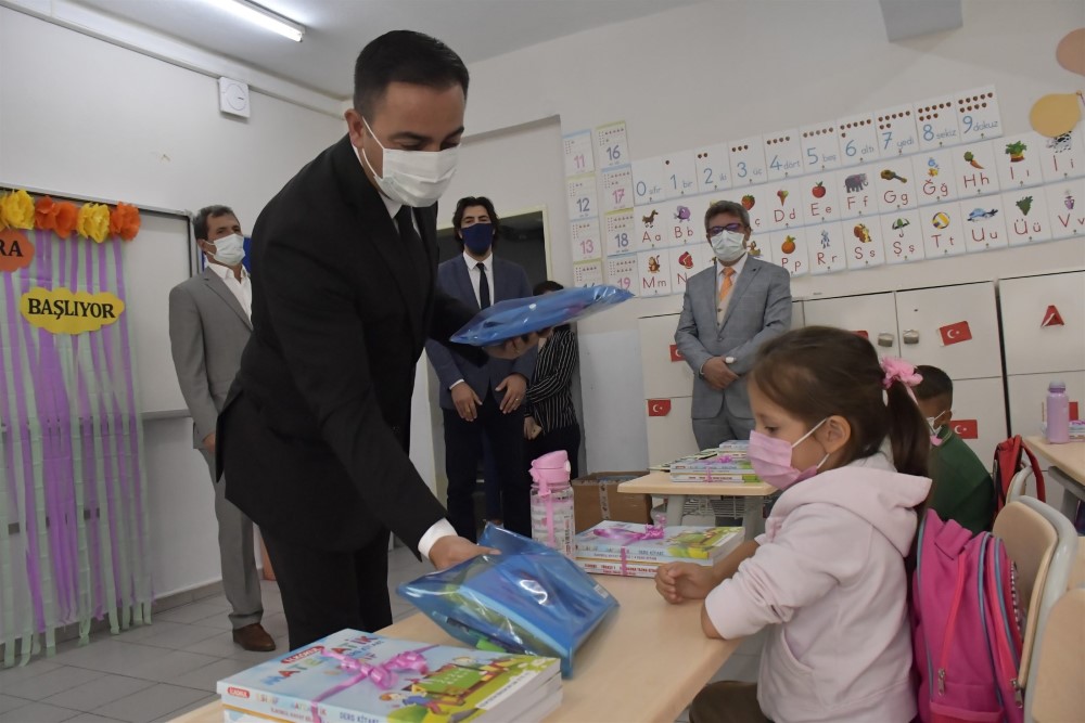 Biga Belediye Başkanı Bülent Erdoğan, 2021-2022 eğitim-öğretim yılında ders başı yapan öğrencilere kırtasiye seti dağıttı.