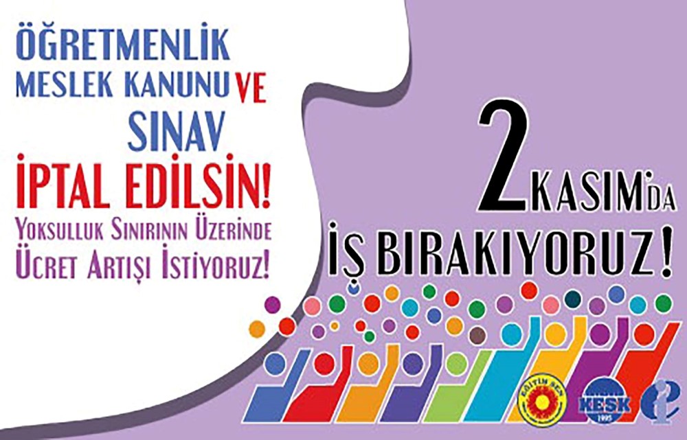 Eğitim sen Çanakkale şubesi sosyal medya sayfasında  “2 Kasım’da iş bırakıyoruz” görseli ile öğretmenlerin 2 Kasım Çarşamba günü yurt geleninde iş bırakacağını duyurdu. “Öğretmenlik Meslek Kanunu ve Sınavı İptal edilsin! Yoksulluk Sınırının üzerinde Ücret Artışı istiyoruz” ifadesine yer verilen Sosyal medya paylaşımında iş bırakma ile ilgili hukuki dayanaklarda açıklanarak şu ifadelere yer verildi. “Kamu görevlilerinin, sendikalarının aldığı kararlar doğrultusunda toplu eylem hakkına sahip oldukları; uluslararası sözleşmelerde, insan hakları sözleşmelerinde, Anayasa ve mahkeme kararlarında hiçbir tereddüde yer bırakmayacak şekilde tanınmaktadır.  Bu konuda çok sayıda Avrupa İnsan Hakları Mahkemesi (AİHM), Danıştay ve idari yargı kararı bulunmaktadır. 151 sayılı ILO Sözleşmesi’nin 3. maddesinde kamu görevlileri örgütlerinin amacının, kamu görevlilerinin çıkarlarını savunmak ve geliştirmek olduğu, kamu çalışanlarının çıkarlarını savunmak amacıyla etkinliklerde bulunabilecekleri düzenlenmiştir. Anayasa’nın “Milletlerarası Antlaşmaları Uygun Bulma” başlıklı 90. maddesinin son fıkrası; “Usulüne göre yürürlüğe konulmuş milletlerarası antlaşmalar kanun hükmündedir. Bunlar hakkında Anayasaya aykırılık iddiası ile Anayasa Mahkemesine başvurulamaz. Usulüne göre yürürlüğe konulmuş temel hak ve özgürlüklere ilişkin milletlerarası antlaşmalarla kanunların aynı konuda farklı hükümler içermesi nedeniyle çıkabilecek uyuşmazlıklarda milletlerarası antlaşma hükümleri esas alınır.” emredici hükmünü içermektedir. Bu düzenleme ile İLO sözleşmesinin kanun hükmünde olduğu tartışmasızdır. 87 sayılı ILO Sözleşmesi, Sendika Özgürlüğüne Ve Örgütlenme Hakkının Korunmasına İlişkin Sözleşmedir. Sözleşmenin birinci bölümündeki maddelerde örgütlenme özgürlüğü düzenlenmiştir. Bu bölümde yer alan 3/1. madde; “Çalışanların ve işverenlerin örgütleri tüzük ve iç yönetmeliklerini düzenlemek, temsilcilerini serbestçe seçmek, yönetim ve etkinliklerini düzenlemek ve iş programlarını belirlemek hakkına sahiptirler.”,Aynı bölümün 8/2 maddesi; “Yasalar bu sözleşme ile öngörülen güvencelere zarar verecek şekilde uygulanamaz.”, Örgütlenme Hakkının Korunması bölümünde yer alan 11. madde; “Hakkında bu sözleşmenin yürürlükte bulunduğu Uluslararası Çalışma Örgütünün her üyesi, çalışanların ve işverenlerin örgütlenme hakkını serbestçe kullanmalarını sağlamak amacıyla gerekli ve uygun bütün önlemleri almakla yükümlüdür.” düzenlemelerini içermektedir.