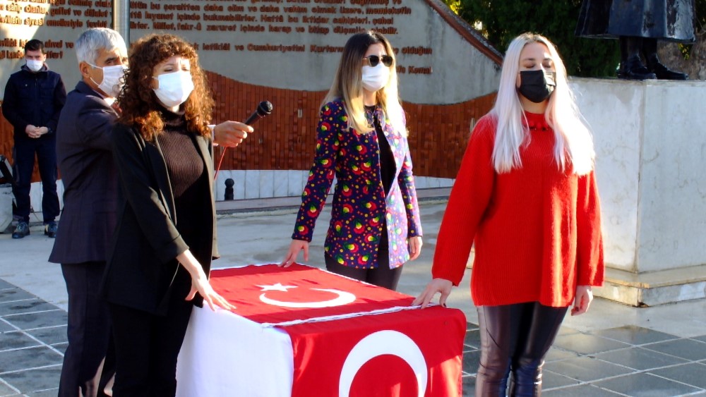 Coronavirüs Pandemisi döneminde öğretmenlerin yaptığı çalışmalara da değinen İl Milli Eğitim Müdürü Yılmaz “Bakanlığımız, içinde bulunduğumuz pandami sürecinden bu yana öğretmenlerimizin desteği ile uzaktan eğitim sürecini en iyi şekilde yöneterek, dünyaya örnek olacak bir çalışmaya imza attık. Öğretmenlerimiz, Sosyal Vefa Destek Grupları birimlerinde çalışarak, eğitimin sadece ders vermek olmadığını, zor zamanlarda ihtiyaç duyan vatandaşlarımızı süreç boyunca destek olarak birlik ve beraberliğimizi bütün dünyaya göstermişlerdir. Meslek Liselerimizin öğretmenleri ve öğrencileri el ele vererek toplum sağlığı için gerekli malzemeleri üretip, zor zamanda verilen mücadeleye ciddi anlamda destek olmuşlardır. Daha güçlü ve daha muvaffak bir ülke için geleceğimizi emanet edeceğimiz nesillerimizin 2023 hedeflerimiz ve 2053 ufkunda, milli değerlerimize bağlı, tarihi değerlerini bilen, geçmiş ve gelecek arasında köprü kurarak ülkümüzü yansıtan üretimler gerçekleştirerek medeniyet tasavvurumuzu gerçekleştireceğimize yürekten inanıyorum. Gayesi vatan olup kendini bu mesleğe adaya n değerli meslektaşlarım, bizlerden gelecek nesilleri oluşturacak yavrularımızı geleceğe hazırlamakla Milli birlik ve beraberliğimizi teminatı geleceğin teminatlarını büyük bir özveri ile yetiştirmektesiniz. Hepinize verdiğiniz emekten dolayı teşekkür ediyorum” dedi. Yılmaz’ ın konuşmasının ardından Öğretmenlik mesleğine yeni atanan Berna Sertkaya, Ezgi Kaya, Yasemin Otçu öğretmenlik mesleği için yemin ederek görevlerine başladılar. Cumhuriyet Meydanındaki tören Yapılan yemin töreni ile sona erdi.