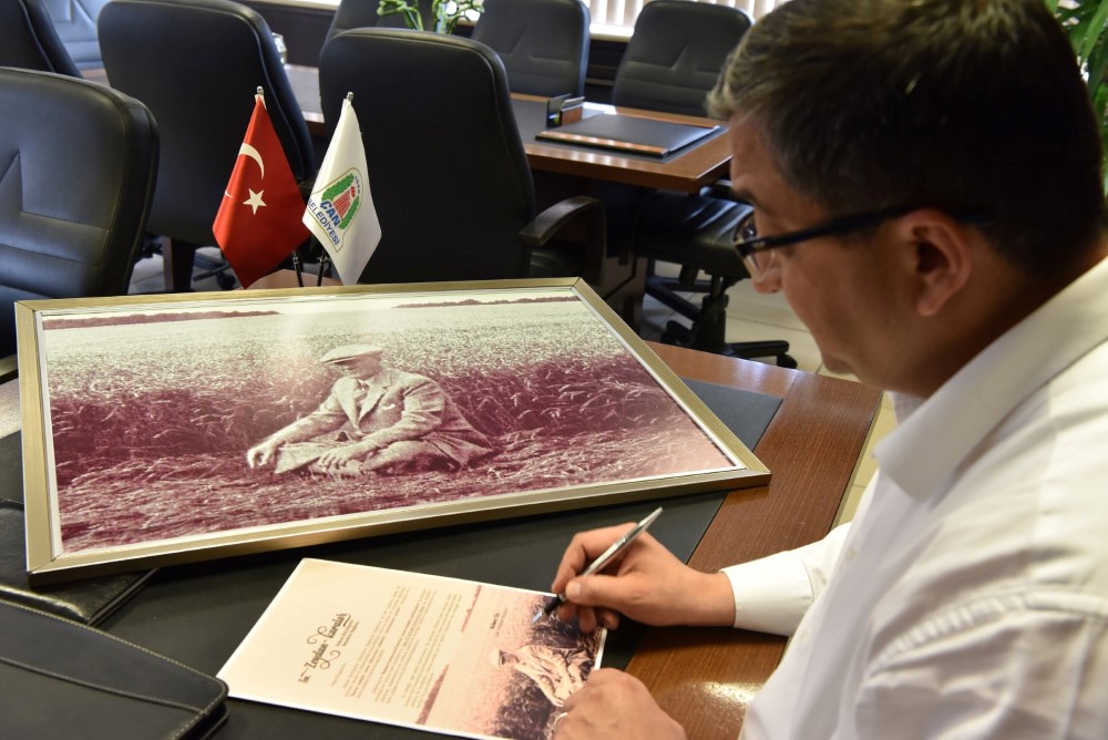 Benim makam odam Adana’nın sokakları demiştiniz. Bu sebeple, eğer kabul buyurursanız, bir zamanlar rütbeleri dahi olmadan Anadolu’nun topraklarında halkı ile birlikte ülkeyi kurtaran Ulu Önderimiz Gazi Mustafa Kemal Atatürk’ün, vatan toprağında bağdaş kururken çekilmiş bir fotoğrafını odanıza asmak için en samimi duygularla size armağan etmek isterim. En içten dileklerle.