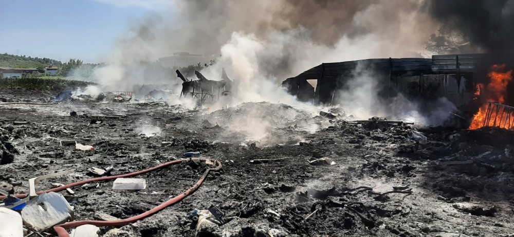 ÖZBEK ATIK TOPLAMA MERKEZİNDE KORKUTAN YANGIN