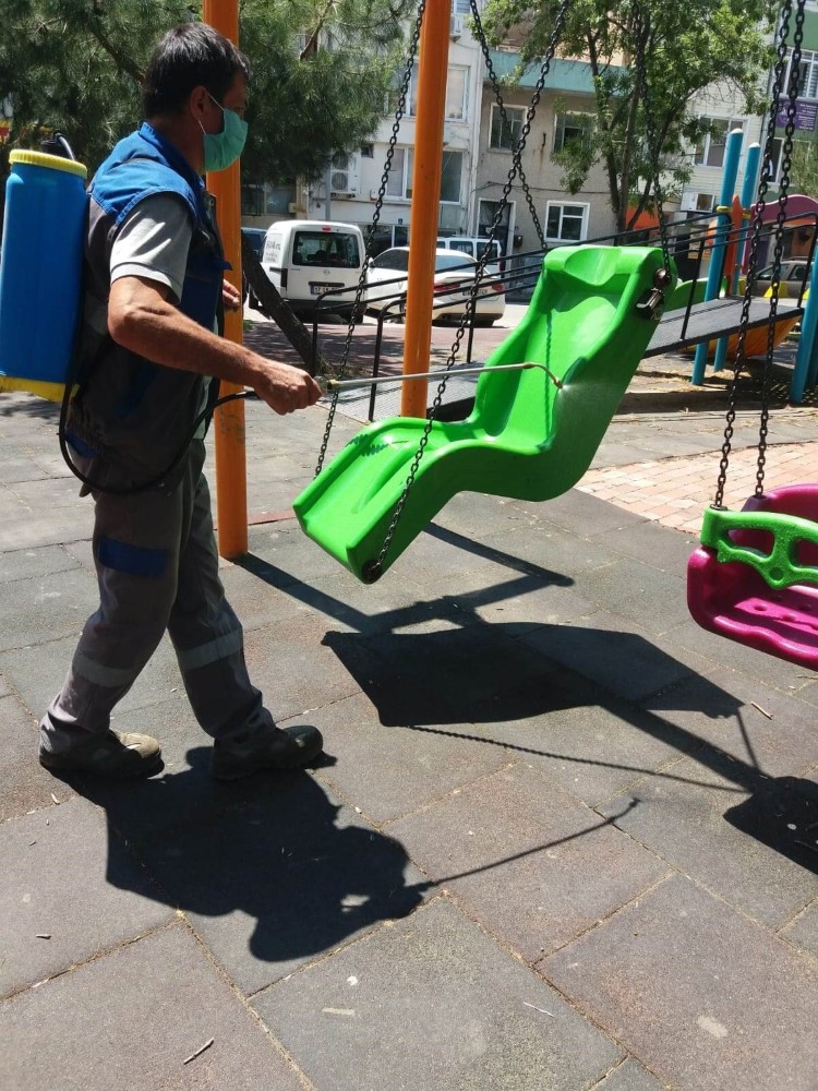 kent genelindeki parklarda da düzenli olarak dezenfeksiyon çalışması
