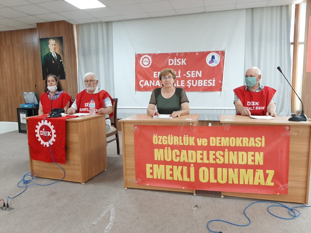 DİSK, Emekli – Sen Çanakkale Şube Yönetim Kurulu Üyesi Emine Pehlivan “Emekliler Haftası “ nedeni ile basın açıklaması yaptı. 4 Temmuza Kadar sürecek Emekliler Haftasında sorunları dile getirdiklerinin altını çizen Pehlivan “haklı taleplerimiz karşısında hükümet üç maymunu oynamaya devam ediyor, dedi. Pehlivan açıklamasında şu cümlelere yer verdi.
