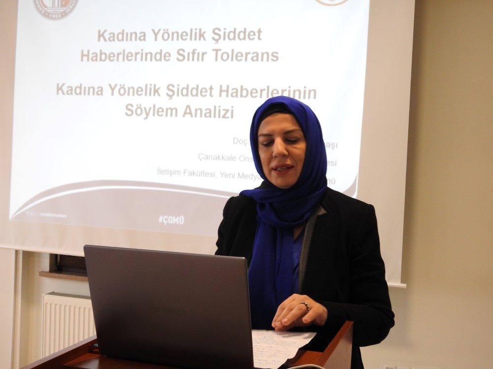 “Kadına Şiddet Haberlerinde Sıfır Tolerans” projesi  kapsamında Çanakkale Onsekiz Mart Üniversitesi (ÇOMÜ) Kadın ve Aile Çalışmaları Uygulama ve Araştırma Merkez Müdür Yardımcısı Doç. Dr. Hicran Özlem Ilgın projenin 2. Eğitim çalışması ile ilgili yaptığı açıklamada “Bu projeyi kadına yönelik şiddetle mücadele il eylem planımızda yer alan üniversitemize verilen görevler içerisinde aslında. biz daha önce bir bir analiz gerçekleştirmiştik. Kadın ve aile çalışmaları yüksek lisans programımızda. Bu analiz sonucunda kıymetli valimiz ve başsavcımız bizden bir proje hazırlamamızı istediler. O proje kapsamında biz medya mensuplarımızla, Çanakkale'deki medya mensuplarımıza özellikle haber üretim ilgili ve kadına yönelik şiddetle mücadelede bu tip haberleri yaparken nelere dikkat etmeliyiz? Bununla ilgili bir eğitim programı planladık. Bu program kapsamında hem iletişim fakültesinde alanında uzman hocalarımız bu noktada ayda bir kere eğitimler veriyor. Bir de onun dışında hem başsavcılığımızdan basın savcımız, kadın savcımız ve şiddeti önleme merkezinden müdürümüz de eğitimler veriyor. öğleden sonra da workshoplar yapıyoruz. Birlikte haberler yazıyoruz. Dolayısıyla kadına yönelik şiddet haberlerinde olması gereken noktaya gelmek için bir çalışma içerisindeyiz’’ dedi.