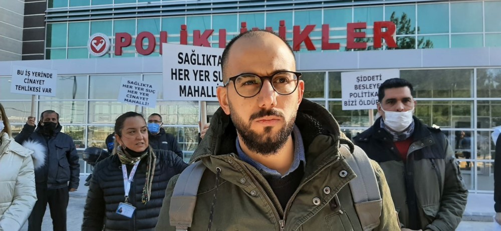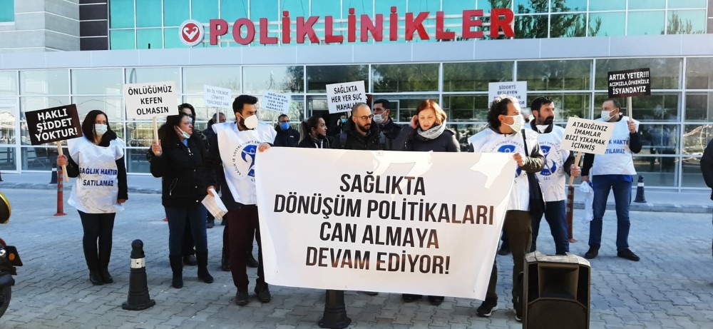 Basın açıklamasının ikinci bölümünü de ÇOMÜ İşyeri temsilcisi Fırat Dindar da açıklamasında Sağlıkta dönüşüm programının sağlık çalışanlarının canına kastettiğini belirterek şunları söyledi. “Sağlıkta Dönüşüm Programı” sağlık çalışanlarının canına kastetmektedir. Programla yaratılan kışkırtılmış sağlık talebi, 5 dakikalık muayene süresiyle göğüslenmeye çalışılmaktadır. Yıllık acil servis başvuru sayısı toplam nüfusunu aşan, dünyadaki tek ülke olmamızla sonuçlanmaktadır. Artan angarya ve iş yoğunluğu altında ezilen sağlık çalışanları, her gün dozu artan şiddete maruz kalmaktadır. Güvenlik önlemleri yetersiz, fiziki imkânlardan yoksun hastanelerde 5 dakikada bir hasta bakmak kaderimiz değil! Nice sağlık emekçisi şiddet ve Pandemi sürecinde alınmayan önlemler nedeniyle hayatını kaybetmiştir, saygı ve sevgiyle anıyoruz. İş yükü bunca artan, hastalık ve ölüm riski taşıyan sağlık emekçilerinin özlük ve mali haklarında herhangi bir iyileştirme yapılmamıştır. Artık yeter! İşlerine yabancılaştırılmış, hayatlarıyla meslekleri arasına sıkıştırılmış, emeklerinin karşılığı ödenmeyen sağlık emekçileri, yurtdışında çalışma imkânlarını araştırmaktadır. Diğerleri de özellere akın etmektedir. Özel hastane zinciri patronu olan Sağlık Bakanı bu durumdan hoşnut olabilir. Ancak zarar görenler yine özellerde çalışan, mali haklarında gerileme yaşayacak, iş güvencesinden mahrum bırakılmış sağlık emekçileri olacaktır. Gerekli önlemlerin alınması için daha ne beklenmektedir? Şiddete daha ne kadar seyirci kalınacaktır? Her sağlık meslek grubundan bizler şiddete, şiddeti özendiren tüm politikalara karşıyız. Kadına yönelik her türlü şiddete karşı, İstanbul sözleşmesinden ve sağlıktaki şiddete karşı etkin mücadeleden asla geri adım atmayacağız. Şiddete maruz kalan tüm sağlık emekçilerine sahip çıkmaktan vazgeçmeyeceğiz. Şiddeti doğuran, sistemin ta kendisidir! Haklarımızı ve halkın sağlık hakkını koruyup geliştirecek, başka bir sağlık sistemi mümkündür. Bu sistemi inşa edene kadar mücadeleye devam edeceğiz. Başta Sağlık Bakanlığı ve Çalışma Bakanlığına çağrımızdır: Bir an önce gerekli tedbirleri alın. İşkolunda örgütlü emek ve meslek örgütleriyle acil bir toplantı organize edin. Şiddete karşı acil eylem planı oluşturun. İşkolu emekçilerine çağrımızdır: Eylem ve etkinliklerimize daha güçlü ses ve omuz verin. Halkımıza çağrımızdır: Bu sistemin sorumlusu biz değiliz. Başka bir sağlık sistemi mümkün! Bizimle birlikte mücadele edin.”