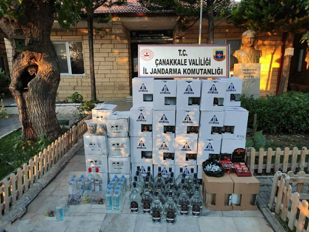 Çanakkale İl Jandarma Komutanlığı ekiplerince Sahte/Kaçak Alkollü İçki, Etil/Metil Alkol suçlarına yönelik yapılan operasyonlar kapsamında, Ayvacık ilçesi Küçükkuyu beldesinde alkollü içki üretiminde kullanılan etil alkol satışı yaptığı tespit edilen 4 ayrı iş yerinin takibi sonucunda yapılan operasyonda, söz konusu iş yerlerinde sahte alkollü içki imalatında kullanıldığı değerlendirilen 465 lt etil alkol, 525 adet alkollü içki yapımında kullanılan test kiti, 2,5 lt aroma, 29 adet cinsel güç artırıcı kapsül ele geçirilmiştir. Olayla ilgisi olduğu tespit edilen 4 şahıs hakkında adli işlem başlatıldı.