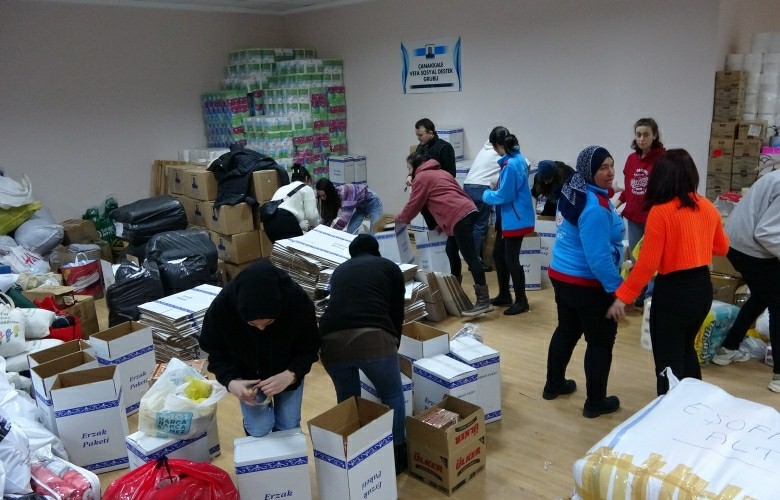 Deprem sonrasında, Çanakkale'de kent genelinde toplanan yardımlar, Çanakkale Belediyesi personelleri ve Kent Gönülleri tarafından tasnif edilerek afet bölgesine gönderilmek üzere hazırlanıyor. Hazırlanan deprem yardımları deprem bölgelerine gönderiliyor.