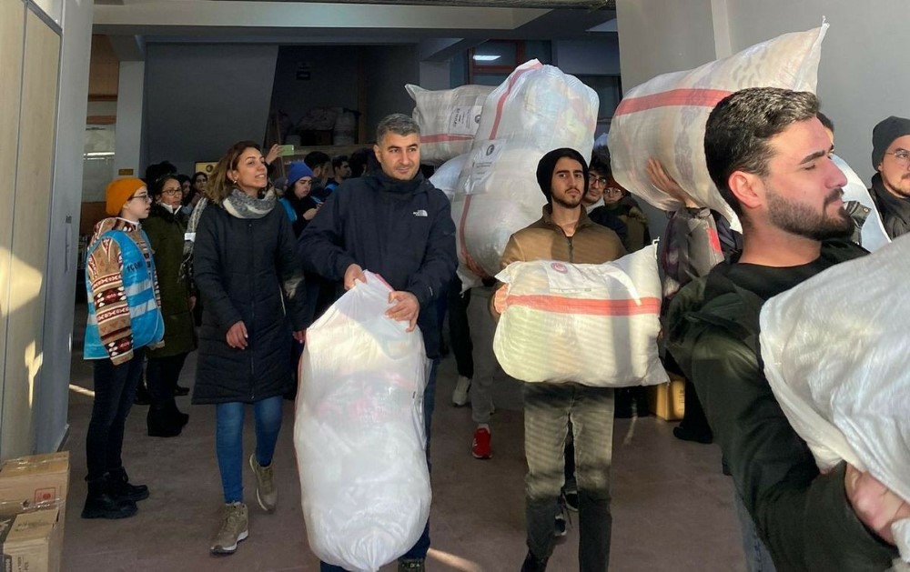 ÇOMÜ’lü akademik ve idari personelin yanı sıra halkımızın da; ayakkabı, bot, ısıtıcı, mont, gıda malzemesi, battaniye, bebek maması, örtü, tuvalet kağıdı, ıslak mendil, bebek bezi, hijyen ürünleri, çocuk, kadın ve erkek kıyafeti, elektronik eşya, atkı, bere, eldiven, çorap gibi malzemelerle yardımda bulunduğu ikinci destek paketi İÇDAŞ’ın AFAD’a tahsis ettiği tır ile deprem bölgesine doğru yola çıktı. Toplanan yardımların deprem bölgesine ulaştırılması için tek yürek olan ÇOMÜ’lü akademik ve idari personel ile çoğunluğunu öğrencilerin oluşturduğu 60’tan fazla kişilik ekip, ülkemizin içinde bulunduğu zor koşullarda, ÇOMÜ Butik çatısı altında örnek bir çalışma sergiledi.