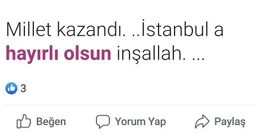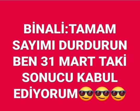 31 Mart seçimlerinin Cumhuriyet Halk Partisi İstanbul Büyükşehir Belediyesi Başkan adayı Ekrem İmamoğlu’ nun İstanbul Büyük Şehir Belediye Başkanı olarak seçilmesinin ardından sosyal medya kullanıcıların seçim sonuçlarına yaptığı yorumlar nedeni ile adeta yıkılmıştı. 31 Mart seçimlerinde sadece İstanbul Büyükşehir Belediye Başkanlığı seçimlerin iptal edilmesi ve seçimlerin 23 Haziran’ da tekrarlanmasının ardından soyal medya yeniden seçim sonuçlarına yapılan yorumlar ile yıkıldı. Sandıkların sayılması ve YSK’ nın seçim yasaklarının kaldırmasının hemen öncesinde Cumhur İttifakı İstanbul Büyükşehir Belediye Başkan adayı Binalı Yıldırım 23 Haziran seçimleri değerlendirdiği konuşmasında rakibi Millet İttifakı İstanbul Büyükşehir Belediye Başkan adayı Ekrem İmamoğlu’ nun seçim başarısını tebrik etmesinin ardından sosyal medya yapılan seçim sonucu paylaşımları ile yıkıldı. İşte sosyal medyada yapılan o paylaşımlardan bazıları.