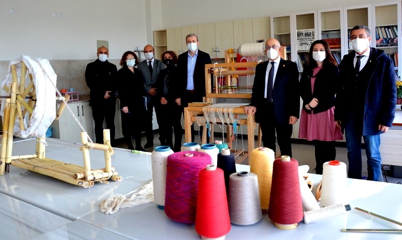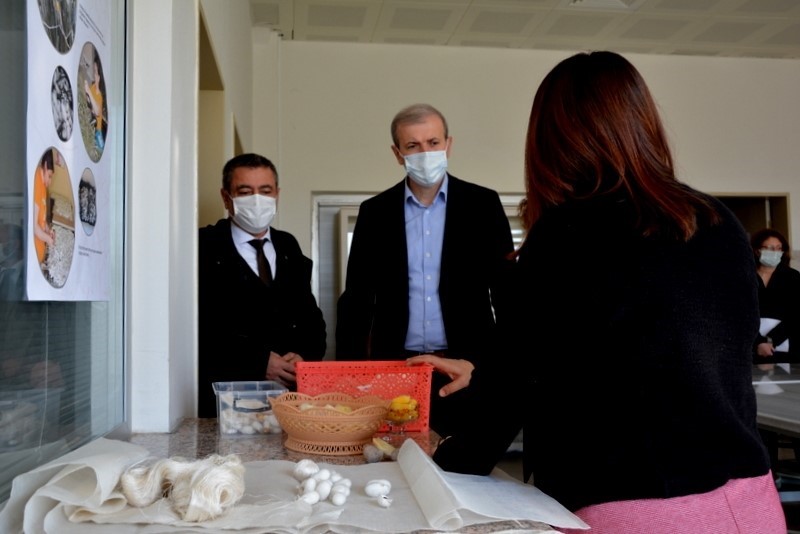 Sunum öncesinde Türkiye’de üniversite bünyesinde ilk ve tek olarak ÇOMÜ GSF’de kurulan İpek Atölyesi’ni gezen Rektör Prof. Dr. Sedat Murat ve beraberindeki heyet Dr.Öğretim Üyesi Berna İleri’den atölye ve ipekçilik ile ilgili bilgiler aldı. Sürdürülebilir ipek konusunda çalışan ve pek çok proje çalışmaları bulunan Dr. Berna İleri, Dünyada ve Türkiye’de ipeğin durumu, ipek böceği yetiştiriciliği ve kırsal istihdamdaki yeri ile ipek dokumacılığının önemini anlattığı sunumda şunları söyledi. “Ülkemiz kırsal ekonomisi için ipek böceği yetiştiriciliği ve ipekli dokumalar oldukça önemli bir yer tutmaktadır. Tarihsel veriler ve sözlü kaynaklar Çanakkale’nin geçmişte ipek böceği yetiştiriciliği yaptığını ve el dokumacılığının da köylerde mevcut olduğu yönündedir. Çanakkale ili ekolojik yapısı, çevresel özellikleri, verimli tarım alanları ve özellikle köylerde halen devam eden koyun, kuzu ve keçi gibi küçükbaş hayvan yetiştiriciliği ile sürdürülebilir tekstil adına yün iplik hammadde temini için oldukça uygun bir şehirdir. Köylerde ipek kozasından iplik ve yün iplik eldesi ile yapılacak kumaş üretimleri sürdürülebilir tekstil için Çanakkale adına büyük fark yaratacaktır. Köylerimizde geleneksel yöntemlerle elde edeceğimiz ve tasarım ile buluşturacağımız ipek ve ipek/yün karışımı tekstiller ile Türkiye’nin ilk Sürdürülebilir İpek ve Tekstil Köylerini Çanakkale’de başlatmış olacağız.” Proje kapsamında Gelibolu’da 4 köy pilot çalışma için belirlendiğini dile getiren Dr. Öğretim Üyesi Berna İleri, köylerde bu ilkbahar yapılacak ipek böceği üretimi için çalışmalara başlandığını belirtti. Köylerde ipekböceği yetiştiriciliği ve ipek dokumacılığı yapılacağını, ayrıca yün ipliklerin de sürdürülebilir tekstil tasarıma dahil edileceğini, yerel kalkınmaya büyük katkı sağlayacağını ifade etti.Proje tanıtımında “ipek kozacılığı ve ekolojik köy” peyzaj tasarım ve planlaması konusunda sunum yapan Mimarlık ve Tasarım Fakültesi Dekan Vekili Prof. Dr. Tülay Cengiz Taşlı ise şunları dile getirdi “Peyzaj kapsamında ipek kozacılığı ekolojik köy peyzaj tasarımını yapmayı planlıyoruz. Örnek köy olarak seçilen Adatepe, Koruköy, Kavak ve Bolayır köylerinden pilot köy olarak koza ipekçiliğine başlanacak olan Adatepe köyünde mevcut durum analizleri yapılarak doğal ve kültürel özellikler tasarıma yön verecektir. Koza ve geleneksel dokumacılığa etki eden unsurlar incelenerek köy tasarımına yansıtılacak, geleneksel koza sokak tasarım kimliği, sergileme alanları vb. kesitleri içeren peyzaj tasarımı gerçekleştirilecek. Tasarım ve projelendirme aşamasında: Leke Plan, Concept Tasarım Projesi, Yapısal Tasarım Projesi, Bitkisel Tasarım Projesi, 3 Boyutlu Görsel Proje, Uygulama-Ölçüt Projesi, Keşif-Metraj ve Detay Projesi yapılarak, projenin köye aplikasyonu (uygulaması) gerçekleştirilmesi planlanıyor. Sürdürülebilir İpek Köyleri Projesi, Güzel Sanatlar Fakültesi Öğretim Üyesi Dr. Berna İleri ve Araştırma Görevlisi Şule Öztürk tarafından; ekolojik köy peyzaj tasarım ve planlaması projesi ise Mimarlık ve Tasarım Fakültesi Dekan V. Prof. Dr. Tülay Cengiz Taşlı, Dekan Yardımcısı Doç. Dr. Okan Yılmaz ve Dr. Öğretim Üyesi Aylin Çelik Turan tarafından yürütülecek