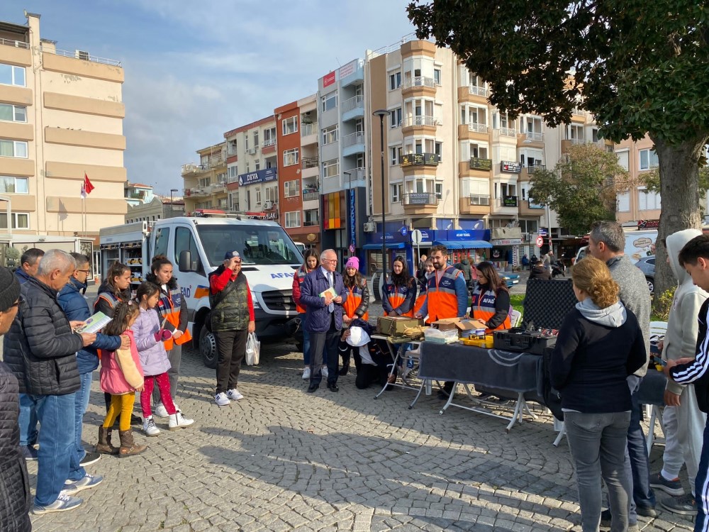 1999 Düzce depreminin yıldönümü nedeniyle bu akşam saat 18.57'de tüm Türkiye'de aynı anda yapılacak olan çok-kapan-tutun tatbikatı öncesinde AFAD İl Müdürlüğü tarafından Çanakkale İskele Meydanında arama kurtarma malzemeleri sergisi ve stant açılarak vatandaşlara afet farkındalığı ve yapılacak tatbikat hakkında bilgilendirmeler yapıldı. AFAD İl Müdürü İbrahim Tarı bizzat stantta bulunarak vatandaşlara bilgilendirmelerde bulundu.