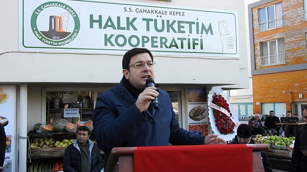 Kepez beldesinde eski belediye binasının altına kurulan Sınırlı Sorumlu Çanakkale Kepez Halk Tüketim Kooperatifi düzenlenen tören ile açıldı. Törene CHP Genel Başkan Yardımcısı Muharrem Erkek, Çanakkale Belediye Başkanı Ülgür Gökhan, Kepez Belediye Başkanı Birol Arslan, CHP İl Başkanı İsmet Güneşhan, S.S Kepez Halk Tüketim Kooperatifi Başkanı Erhan Erdem ve çok sayıda davetli katıldı. Açılış töreninin ilk konuşmasını yapan S.S Kepez Halk Tüketim Koopertifi adına konuşan Erhan Erdem “ Her şey tohumla başladı. Biliyorsunuz ki ülkemizdeki tohumların hepsi yabancı ve hibrit tohumlar. Yerli tohumların alınması ve satılması yasaklandı. Her şey tohumla başladığında önce topraklarımız kirlendi. Sonra o topraklarda yetişen sebze meyve ve diğer ürünler sofralarımıza gelmeye başladı. İşte bizde böyle bir ortamda “ Tohumdan Sofraya” sağlıklı gıdanın yaratılabileceği bir oluşum kurmak için bir araya geldik. Bu birliktelikle Sınırlı sorumlu Kepez Halk Tüketim Kooperatifini Kurduk. Halk Tüketim Kooperatifi olarak sağlıklı gıda tüketebilmek, bu sağlıklı gıdaları soframıza denetimli bir şekilde getirebilmek amacı ile Çanakkale’nin Kepez Beldesinde küçükte olsa bir adım atarak tüketicilerin sağlıklı ürünleri bulabileceği bir satış yerini açtık” dedi.