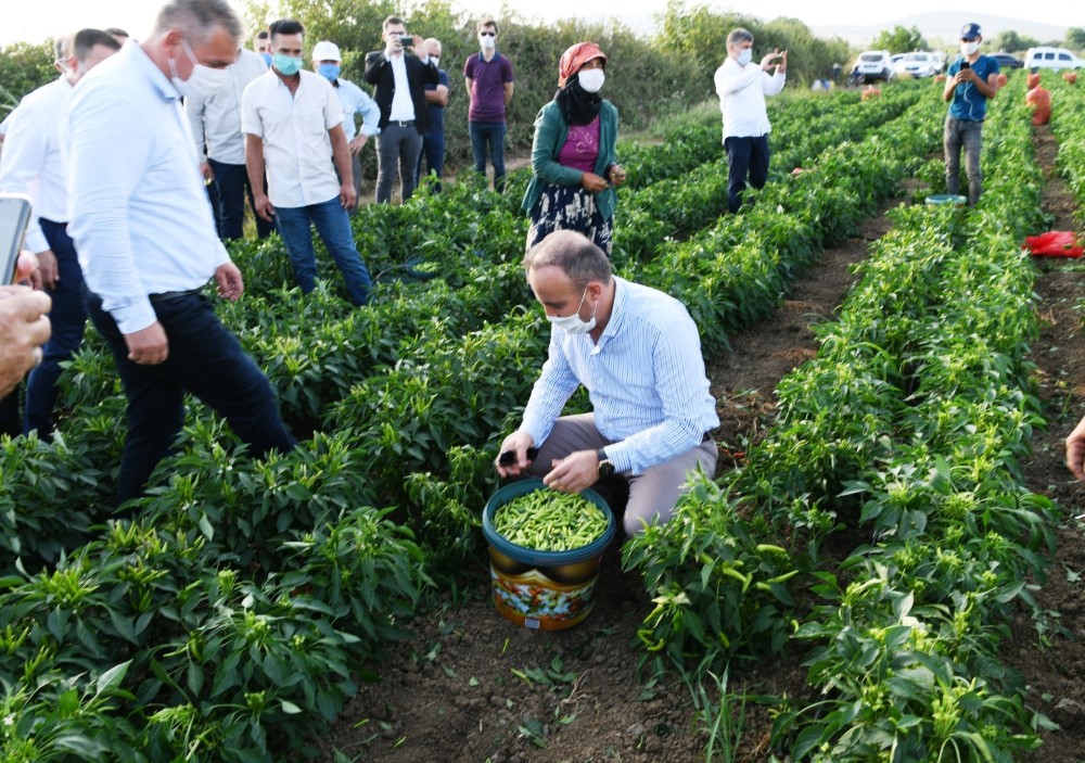 TURAN, İŞÇİLERLE BİRLİKTE ACI BİBER TOPLADI