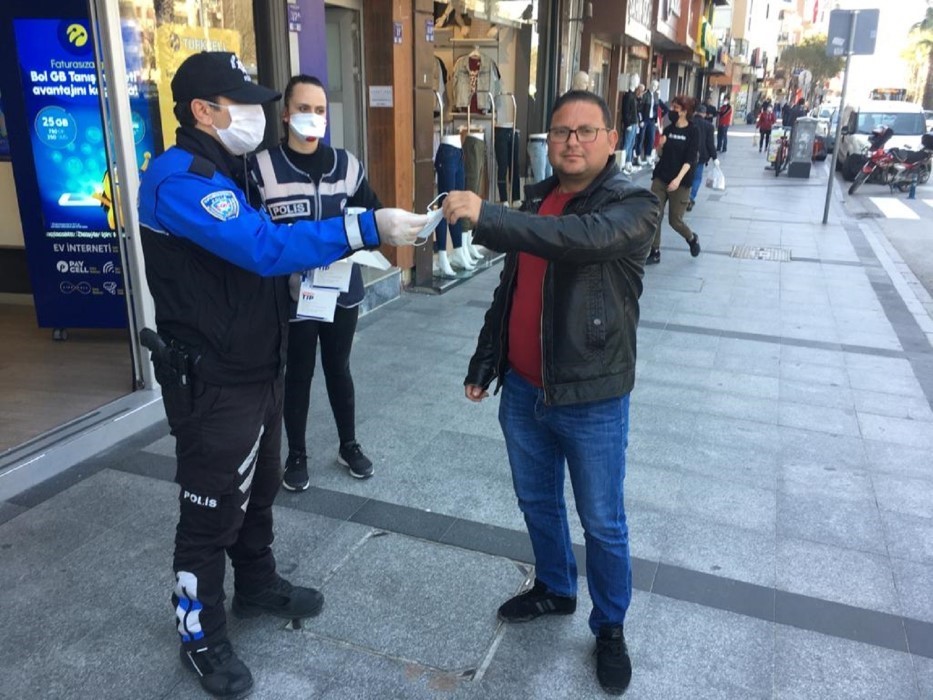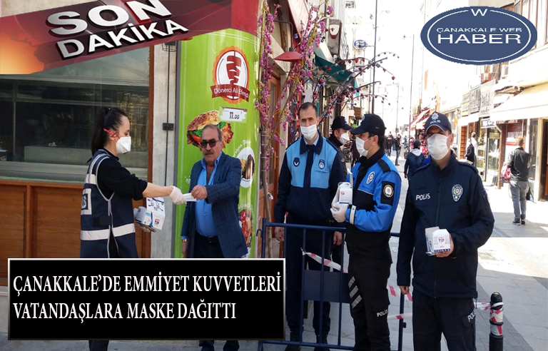 Çanakkale Valiliği koordinasyonunda Coronavirüs salgınına yönelik tedbirler kapsamında Çanakkale İl Emniyet Müdürlüğü’nde görevli polislerimiz, kamu güvenliği ve halkımızın huzurunun en üst düzeyde sağlanmasının yanı sıra vatandaşlarımızı toplu ve kapalı alanlarda sosyal mesafeye uymaları yönünde uyararak halkımızın sağlığı için de vatandaşlarımıza Maske dağıtımı yapıyor. Coronavirüs ile mücadele kapsamında Türk Polisi Sahada Her Zaman Vatandaşının Yanında anlayışıyla Çanakkale İl Emniyet Müdürlüğü’nde görevli 32 personelle Çanakkale merkezde, Çarşı caddesinde ve Demircioğlu caddesinde esnaf ve vatandaşları sosyal mesafeye uymaları yönünde uyararak, 1500 adet maske dağıtımı gerçekleştirdi. Evlerinde kalan ve bu çalışmalarda bizlere destek veren bütün Çanakkalelilere şükranlarımızı sunuyoruz.