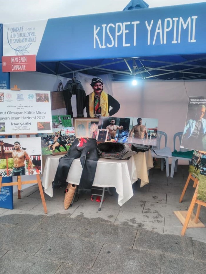 Türkiye ve Dünya’nın yakından tanıdığı kıspet ustalarından İRFAN ŞAHİN, 23-29 eylül tarihleri arasında İskele Meydanı’nda düzenlenen Altın Eller Geleneksel El Sanatları festivali'nde stant açtı.  Mesleğinde yarım asrı geride bırakan  Kıspet Ustası Şahin, festivalde hem yaptığı kıspetleri sergiliyor hem de ziyaretine gelenlere unutulmaya yüz tutmuş mesleği hakkında bilgi veriyor. Hayatı ve mesleği hakkında bilgi veren Kıspet Ustası İrfan Şahin 18 eylülde Biga’da yapılan Yağlı Başpehlivan Güreşleri hakkında da görüşlerini dile getirerek Biga Belediye Başkanı Bülent Erdoğan’ın kendisini onurlandırdığını belirtti. Bigalı Kıspet Ustası İrfan Şahin, Birleşmiş Milletler Eğitim, Bilim ve Kültür Örgütü’nün Somut Olmayan Kültür Miras Çalışmaları kapsamında 2010 yılında “Yaşayan İnsan Hazinesi” seçilmişti.