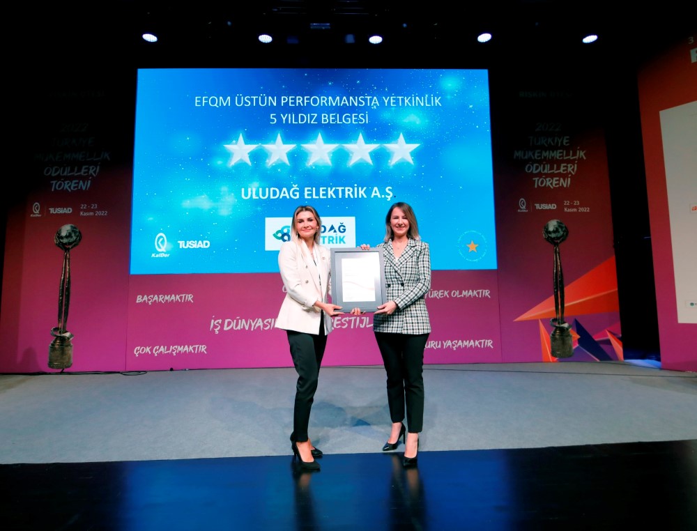 Uludağ Elektrik, Türkiye Kalite Derneği (KalDer) tarafından düzenlenen Türkiye Mükemmellik Ödülleri’nde de 5 Yıldız Yetkinlik Belgesi’ne hak kazanarak, başarısını bir kez daha perçinledi. KalDer Türkiye tarafından 5 Yıldız Belgesi’ne layık görülen Uludağ Elektrik, bu ödülü alan ilk elektrik perakende satış şirketi oldu.