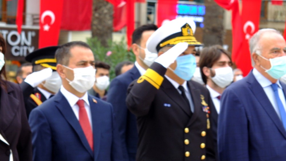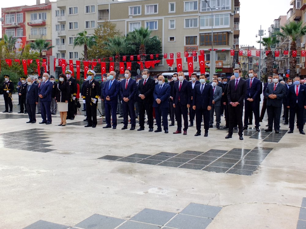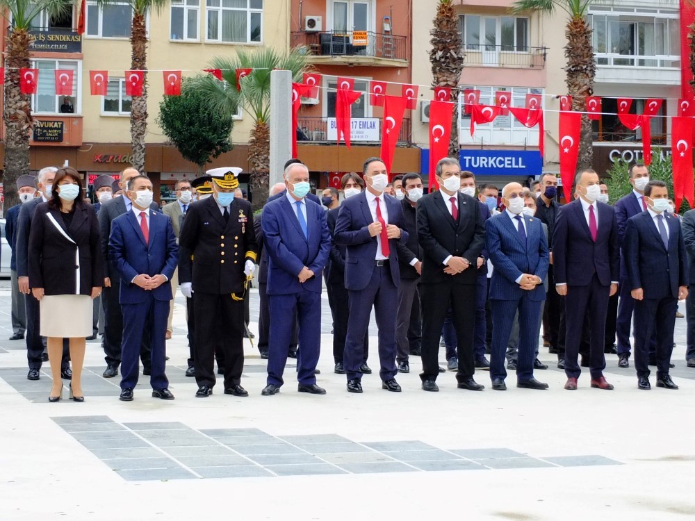 Cumhurbaşkanı Recep Tayyip Erdoğan’ ın mesajının okunmasının ardından Günün anlam ve önemini belirten konuşmayı yapmak üzere kürsüye gelen Vali İlhami Aktaş “Atatürk İyi Anlayıp Geleceğimizi Ona Göre Planlamalıyız” diyerek konuşmasında şu cümlelere yer verdi. “Öncelikle Cumhuriyetimizin kurucusu Mustafa Kemal Atatürk ve onun silah arkadaşları ile gazi ve şehitlerimiz yad etmek istiyorum. Öncelikle tarihimizin en büyük destanlarından birinin yazıldığı Çanakkale ilimizde Cumhuriyet Bayramını kutlamanın ve bu bayramda aranızla olmanın heyecanı ve mutluluğu içinde olduğumuz sizler ile paylaşmak isterim. 100. Yılını kutlamaya hazırlandığımız ve bugün 97. Yılını kutladığımız Cumhuriyetimizin kuruluş yıldönümünde tüm dünyayı etkisi altına almış olan Pandemi şartlarından dolayı istediğimiz ve arzuladığımız coşkuyu sağlayamamamızın derin acısını hissettiğimizi belirtmeliyim. Umarım buruk bir şekilde kutladığımız son Cumhuriyet Bayramı olur. Büyük yıl dönümleri geçmişin yeniden değerlendirildiği bu değerlendirme ışığı altında geleceğin tasarlandığı tarihi anlardır. Böyle günler Milletlere nereden geldiklerini ve nereye gittiklerini gözden geçirecekleri kollektif düşünme fırsatı sağlar. Bu fırsatları iyi değerlendirip nereden geldiğimizi ve yarınımızı düşünmek gelecek nesillere olan bir borcumuzdur. Tek gayesi halkın refahı ve mutluluğu olan Cumhuriyeti ve onun kurucusu Mustafa Kemal Atatürk iyi anlayıp geleceğimizi ona göre planlamalıyız. Hiç bir millet geçmişle ile yaşayamaz ancak unutulmaması gerekir ki tarihi birikimler bizi geleceğe taşıyan köprülerdir. Bu nedenle bu gibi bayram ve törenlerin önemini iyi kavramak gerekir. 97 yıl sonra geldiğimiz bu günlerde Cumhuriyetin kazanımları ile ülkemiz bölgesinde önemli bir güç haline gelmiştir. Dış güçlerin maşası terör örgütlerine gerekli dersler verilmiş, terör ile mücadelede devletimiz tam bir üstünlük sağlamıştır. Yine uluslararası alanda da her geçen gün etkinliği artan. Artık ne diyeceği ve ne söylediği önemli olan bir Türkiye vardır. Her türlü iç ve dış tehdide rahmen Ülkemiz cumhurbaşkanı Recep Tayyip Erdoğan’ın önderliğinde 2023 hedefine hızla ilerlemektedir. Buna tahammül edemeyen dış güçler boş durmamakta ve Türkiye’ nin önünde set olabilmek için her türlü çabayı göstermektedirler. Yine kardeş ülkemiz Azerbaycan’ da da gurur duyduğumuz bir mücadele yürütülmekte ve büyük güçlerin desteğine rahmen Ermenistan’a gerekli dersler verilmektedir. Cumhuriyet bayramımınız istediğimiz coşku ile kutlayamamamıza neden olan Pandemi ile ilgili Çanakkale halkımızdan Pandemi tedbirlere daha fazla hassasiyet göstermelerini beklediğimizi belirtmek istiyorum. Açık alanlardan kapalı alanlara geçişlerin başlaması ile birlikte tüm dünyada olduğu gibi ülkemizde de dolayısı ile ilimizde de Coronavirüs vakaları artmaktadır. Bu kutlu gün ve bayramlarımızı buruk kutlamamak için herkesten tedbirlere uymalarını önemle rica ediyorum. Alınan tüm tedbirlerin vatandaşın kendi sağlığı için olduğunun bilinmesi gerekir. Cumhuriyetimizin ilanının 97. Yıldönümünde Gazi Mustafa Kemal Atatürk Başta olmak üzere İstiklal Savaşımızın kazanılmasında öncülük eden tüm kahramanlarımıza tekrar saygı ve şükran ile yad ediyorum. Bin yıllık vatanımızın her karış toprağında kanı ve alınteri olan tüm ecdadı minnet ile anıyorum. Bu 97 yıllık süreçten bugüne kadar verdiğimiz tüm şehitlerimize Allahtan rahmet diliyorum. Gazilerimize sağlıklı uzun ömürler diliyorum. Kardeş Azerbaycan’ ın yayında olduğumuzu ifade ederek haklı mücadelelerinde yanında olduğumuzu ifade ediyorum. Ordumuzun her tülü mücadelede muzaffer olmasını temenni ediyorum. En kısa zamanda Coronavirüs salgınından tüm dünyanın kurtulmasını temenni ediyorum.” Tören Vali İlhami Aktaş’ın konuşmasının ardından sona erdi.