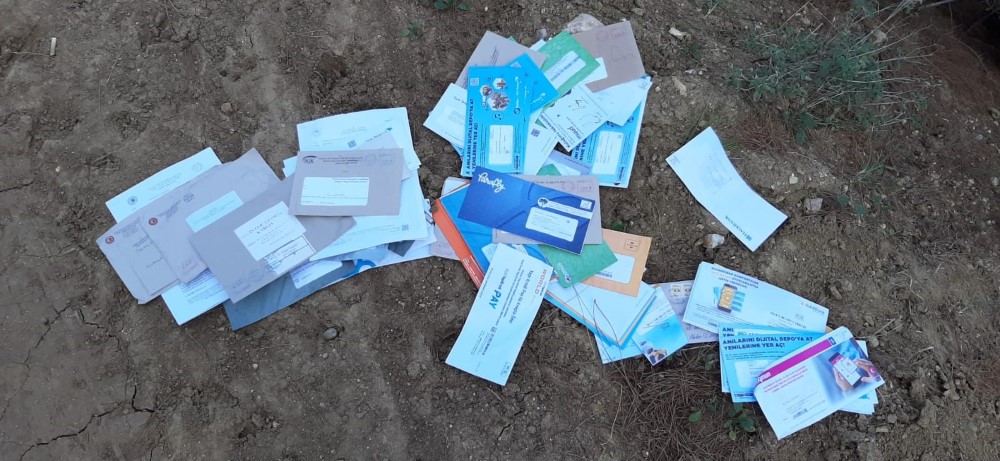 VATANDAŞA ULAŞMASI GEREKEN YÜZLERCE RESMİ EVRAK VE FATURA ORMANA ATILMIŞ