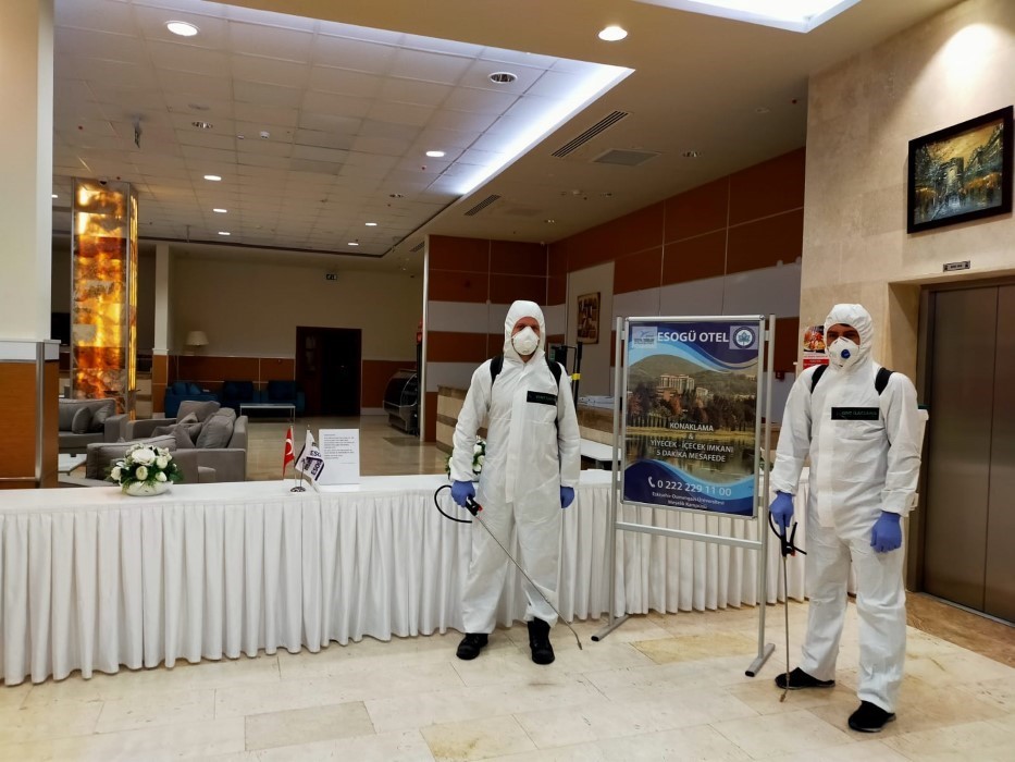 “Yine otellerimizde bulunan klima gibi iklimlendirme cihazları bulaşık makinası gibi malzemelerin peryodik bakımlarının hassasiyet ile yürütülmesi özellikle klimaların filtre sistemlerinin yine peryodik olarak günlük değişimlerinin sağlanması. Hem genel alanlarda hem de misafirlerin konakladığı odalarda, misafirin sıkça temas ettiği sert yüzeylerin iki saatte bir dezenfektanlar ile temizlenmesi. Aynı şekilde oda temizliğinde mutlaka tüm odalarda ve genel alanlarda dezenfektasyon işleminin uygulanması, özellikle bu dezenfektasyon uygulanacak yerler özellikle sıkça misafirlerin temas halinde olduğu klima kumandaları, odalarda bulunan otel telefonları, kapı kolları, asansör tuşları, ortak alanlardaki tuvaletlerin kapı kolları, genel sert yüzeylerde dezenfektasyon uygulamalarının yapılması, yine misafire verilmek üzere hazırda maske bulundurulması yine açıklanan genelgenin maddeleri içerisinde bulunuyor. Genel olarak baktığımızda bu ana çerçeveleri ile bahsettiğimiz ve mutlaka protokolleri bağlanması , tüm otellerin bunu bir yazılı hale getirmesi gereken ve otel personelininde bu yazıya dökülen protokol ile ilgili periyodik olarak bilgilendirmesi, eğitime tabi tutulması çok çok önemli.bu bahsettiğin ana hususlar genelge kapsamında herkes tarafından uygulanması gereken tedbirler.”