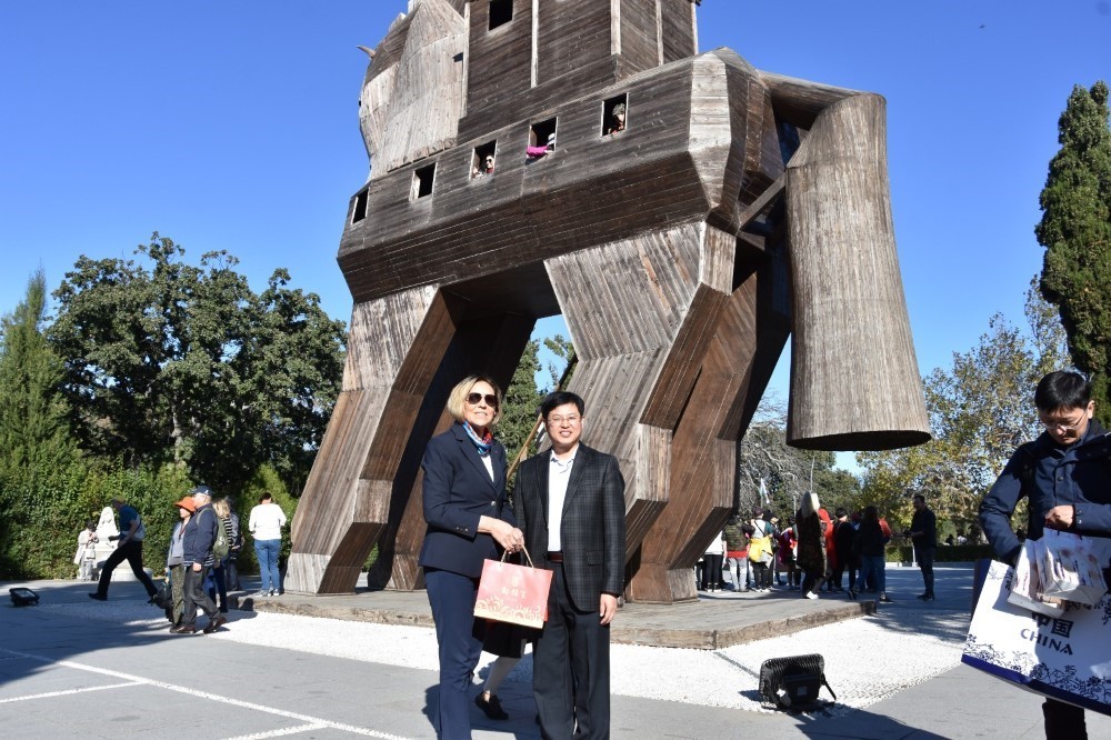 Çanakkale İl Kültür ve Turizm Müdür Yardımcısı Sedat Arslan, GMKA Çanakkale Temsilcisi Recai Başaran, Türkiye Seyahat Acentaları Birliği (TÜRSAB) Çanakkale Körfez Bölgesel Temsil Kurulu Yönetim Üyesi İkbal Akça ve Troya Antik Kenti Kazı Başkanı Prof. Dr. Rüstem Aslan; Çin Başkonsolos Yardımcısı Zhong Hongnuo ve Vize Bölümü Konsolosu Xu Minglei ve beraberindeki ekip Troya Antik Kentinde Çin’den gelen turistlerle sohbet ederek hatıra fotoğrafları çektirdiler.
