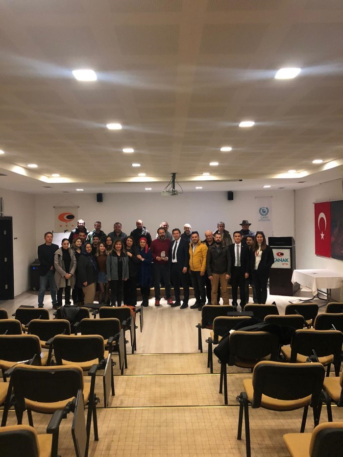 Çanakkale Bölgesel Turist Rehberleri Odası (ÇARO), 21 Şubat Dünya Turist Rehberleri Günü kapsamında, İzmir Turist Rehberleri Odası (İZRO) Yönetim Kurulu Üyesi Dr. Mehmet Kürkçü’yü ağırladı. Profesyonel Turist Rehberi Kürkçü, Çanak Otel’de, ‘Antikçağ’da Kent ve Şehircilik’ konulu konferans düzenledi. Konferansa, ÇARO Yönetim Kurulu Başkanı Ü. Cihan Müşterioğlu, Yönetim Kurulu Üyeleri Onur Akgül, Ercan Yavuz, Çağrı Tok ile birlikte mesleğinde uzman turist rehberleri ile mesleğe yeni başlayan turist rehberleri katıldı. Konferansa başlamadan önce kısa bir konuşma gerçekleştiren Dr. Kürkçü, turist rehberliği imajının olumlu yönde gelişmesi adına turist rehberliği eğitiminin çok önemli olduğuna da değinerek, akademik eğitimde köklü değişiklere ihtiyaç olduğunu vurguladı. Öte yandan, akademisyenlerin sektörün içerisinden atanması ve ön lisans, lisans ve yüksek lisans programlarındaki gereksiz derslerin kaldırılması noktasında da önerilerini aktardı.Konuşmasını bitirdikten sonra konferansa başlayan Dr. Kürkçü, ‘Antikçağ’da Kent ve Şehircilik’ konusunda detaylı bir sunum gerçekleştirdi. Soru cevap şeklinde ilerleyen konferansın bitiminde ÇARO Yönetim Kurulu Başkanı Müşterioğlu, Profesyonel Turist Rehberi Dr. Kürkçü’ye plaket takdiminde bulundu.