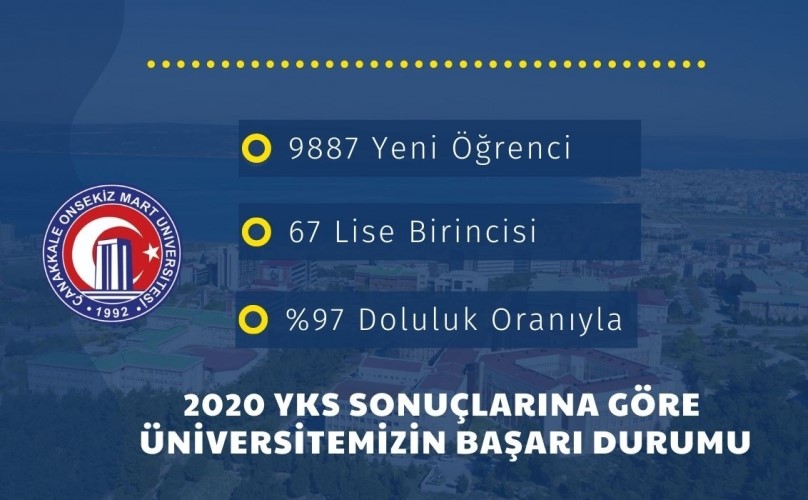 Ölçme, Seçme ve Yerleştirme Merkezi (ÖSYM) tarafından Yükseköğretim Kurumları Sınavı (2020 -YKS) yerleştirme sonuçları açıklandı. 2 milyon 500 bin adayın başvurduğu sınavın ardından Çanakkale Onsekiz Mart Üniversitesi (ÇOMÜ) öğrenciler tarafından en çok tercih edilen üniversiteler arasında yerini aldı. ÇOMÜ kontenjanları 2020 YKS sonuçlarına göre %100'e yakın oranda doldu.