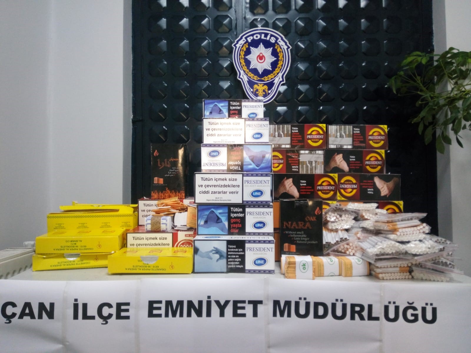 Çanakkale Emniyet Müdürlüğü Kaçakçılık ve Organize Suçlarla Mücadele Şube Müdürlüğü ve Çan İlçe Emniyet Müdürlüğü ile birlikte Kaçakçılık Suçlarının önlenmesine yönelik yapılan ortak operasyon sonucunda Çan ilçesinde bulunan Tütün ve Tütün Mamulleri satışı yapan işletmede ve şahsın deposunda yapılan aramada, 1022 kilogram kıyılmış sarmalık tütün, 51 kutu her birinde 200 adet doldurma sigara bulunan toplamda 10.200 adet doldurma sigara, 2 kutu gümrük kaçağı nargile kömürü ve 7 kutu içerisinde 630 paket gümrük kaçağı sigara sarma kâğıdı ele geçirildi. Ele geçirilen malzemelere savcılık talimatıyla el konuldu. Şüpheli şahıs hakkında 5607 SKM suçundan adli işlem yapıldı. Şahıs ifadesi sonrasında Çan İlçe Emniyet Müdürlüğünden serbest bırakıldı.