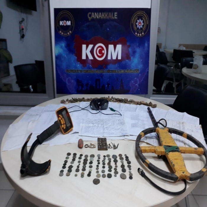 Çanakkale Emniyet Müdürlüğü Kaçakçılık ve Organize Suçlarla Mücadele Şube Müdürlüğünce, Çanakkale genelinde sürekli olarak devam eden istihbarat çalışmalarda; Çanakkale’nin Biga ilçesinde ikamet eden E.T isimli şahsın elinde çok sayıda tarihi eser bulunduğu tespit edildi. Konunun Biga Cumhuriyet Başsavcılığımızla paylaşılmasının ardından Cumhuriyet Başsavcılığınca şüphelinin ikametinde arama yapılmasına yönelik verilen karar doğrultusunda ikamette yapılan aramada