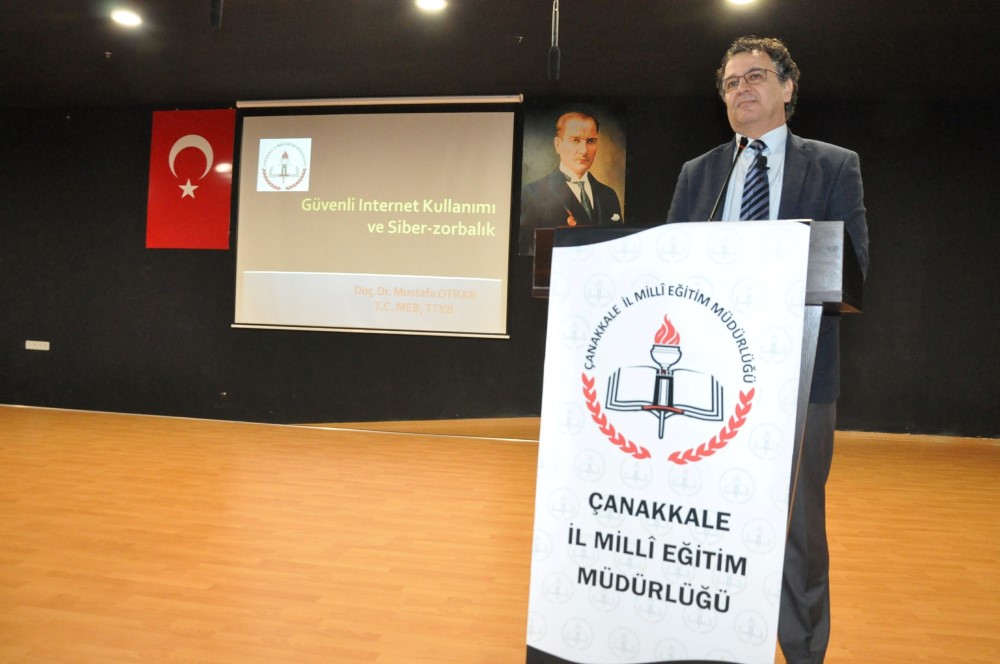 Çanakkale İl Milli Eğitim Müdürlüğü tarafından “Güvenli İnternet Kullanımı, Siber Zorbalık ve Öğrenci Güvenliği” konularında seminer düzenlendi. Talim ve Terbiye Kurulu Üyesi Doç. Dr. Mustafa OTRAR tarafından verilen konferansın sabah oturumunda Çanakkale il merkezinde görevli öğretmenlere, öğleden sonraki oturumunda ise öğrenci velilerine eğitim verildi.