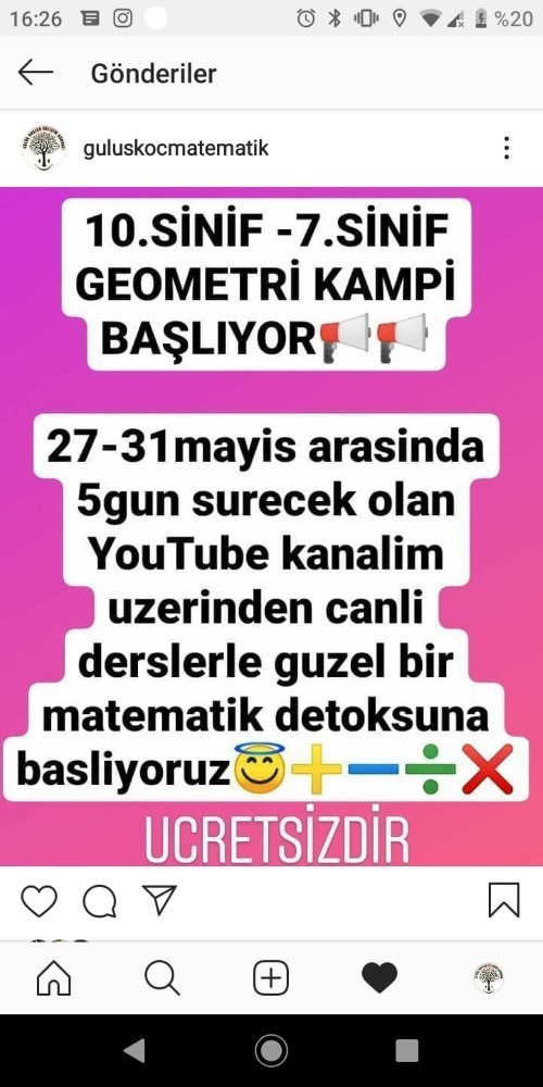 Matematik öğretmeni ve öğrenci koç’u Gülhan Yanıkoğlu (Gülüş Koç) Coronavirüs sürecinde kendisine ait olan You Tube kanalından dersler vererek öğrencilere faydalı olmaya çalışıyor.27-31 Mayıs tarihleri asında “Geometri kampı” adı altında canlı yayınlanacak olan etkinlikle öğrencilerin birebir sorularını çözerek ve ders anlatımı yapacak olan matematik öğretmeni Gülhan Yanıkoğlu (Gülüş Koç) öğrencilere b u canlı yayınlar ile yardım etmeye çalışacağını ve canlı yayınların çok faydalı olacağına inandığını ifade etti. 27-31 Mayıs tarihleri arasında saat 20.00’de 10. Sınıf öğrencileri ve saat 20.40’ta da 7. Sınıf öğrencilere ders antlımım ve soru çözümleri konusunda canlı yayında ders verecek olan Gülhan Yanıkoğlu (Gülüş Koç) “Pandemi günlerinde öğretmenliğin kutsallığı adına hemen her Öğrenciye ulaşabilmek için kurduğum YouTube kanalında ücretsiz ders ve soru Çözüm videoları bulunmaktadır. Gelen talepler doğrultusunda videolar çekip yüklemekteyim . Ramazan dolayısıyla müfredat içerisinde geometri kaynaklı 7. ve 10. sınıf öğrencilerimiz’ den talepler geldi, buna bağlı olarak 5 günlük geometri kampı hazırladım bu aksam 20.00 itibariyle başlayacak olan kampımız Pazar günü sonlanacak. Bu kamp süresince geometri adına güzel işler başaracağımız bol soru çözümü konu anlatımı ve pratik yollarla canlı yayın ile sizlerle birlikte olacağım. Çanakkale ve tüm Şehirler programa davetlimizsiniz hadi arkadaşlar her zaman daha ileriye atalım şu ataleti üstümüzden kitap defter kalemleri hazırlayalım tatile girmeden hemen önce kampımızda 2.dönem geometri konularını şöyle bir toparlayalım.” dedi. Gülhan Yanıkoğlu’nun (Gülüş Koç) Geometri kampına katılmak için Gülhan Yanıkoğlu’ nun (Gülüş Koç) “ Gülüş Koç Matemtik” You Tube kanalından takip edebilirsiniz.