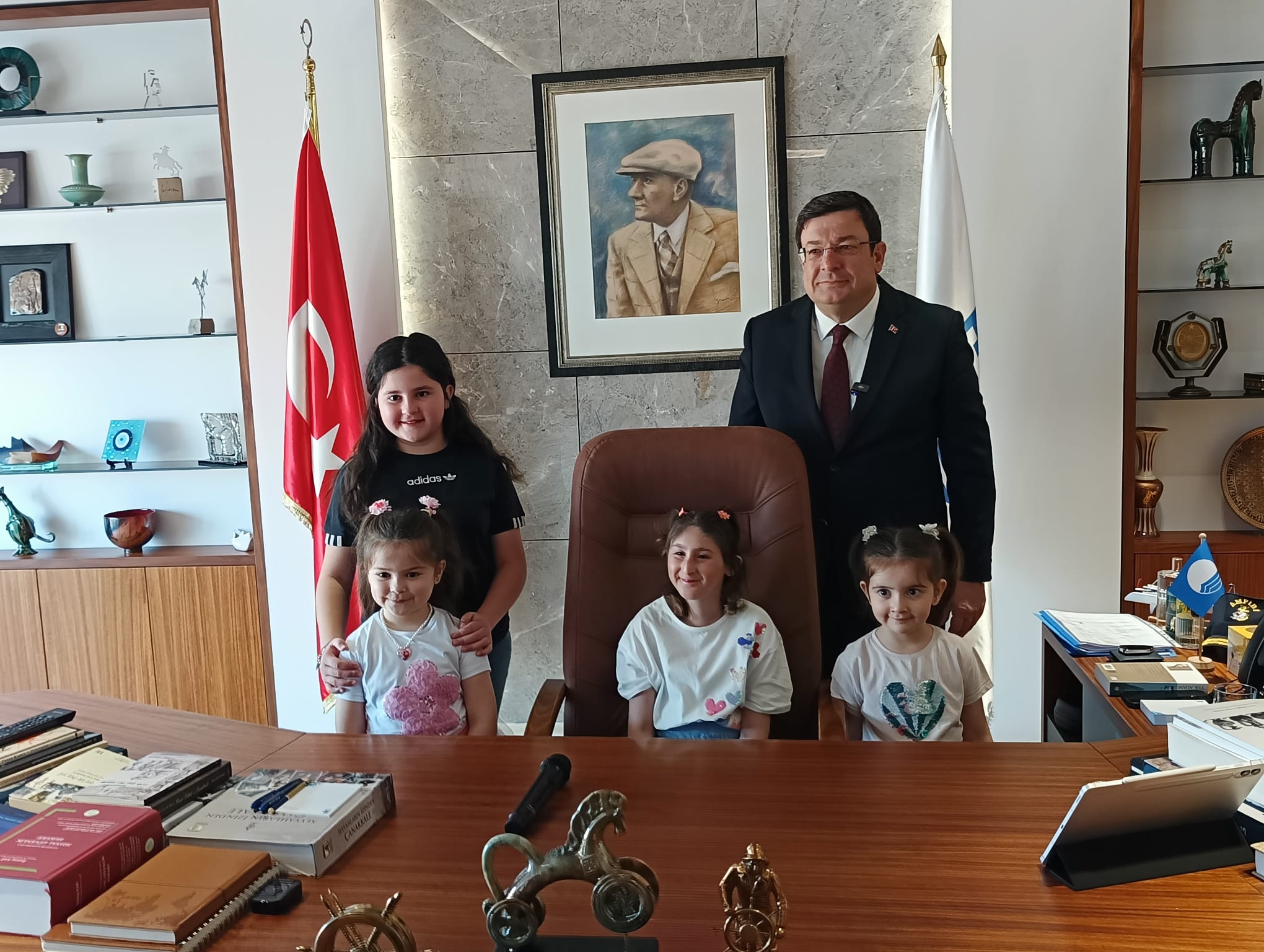 Çanakkale’de 23 Nisan Ulusal Egemenlik ve Çocuk Bayramı kutlamaları kapsamında her yıl geleneksel hale gelen "makam devri" bu yıl bambaşka bir hikâyeye ev sahipliği yaptı. Çanakkale Belediye Başkanı Muharrem Erkek, 23 Nisan 2026 Perşembe günü saat 09.00’da koltuğunu geleceğin teminatı olan çocuklara bıraktı. Bu anlamlı günde başkanlık koltuğuna oturan isim, Fen İşleri Müdürlüğü personeli Samet Uyanık’ın kızı Güneş Uyanık oldu. Güneş’i yaşıtlarından ayıran ise kısa süre önce kemik iliği yetmezliği hastalığına karşı verdiği büyük mücadeleyi kazanarak sağlığına kavuşmuş olmasıydı.