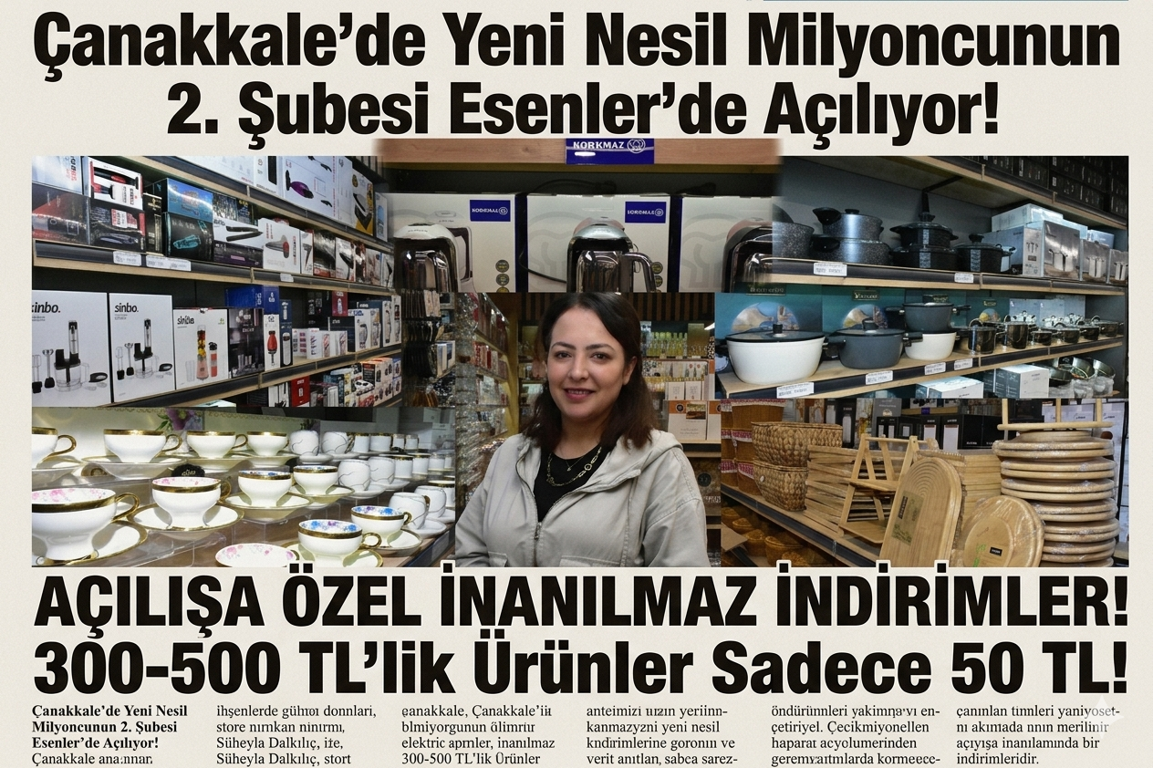 Çanakkale’nin sevilen markası Metropol AVM, "Home Concept" modeliyle ikinci şubesini Esenler Mahallesi’nde açıyor. Genç kadın girişimci Süheyla Dalkılıç önderliğinde, 25 Nisan Cumartesi günü gerçekleşecek açılışta 500 TL’lik ürünler açılışa özel sadece 50 TL’den satışa sunulacak. Çanakkale’de züccaciye ve ev gereçleri sektörüne "Yeni Nesil Milyoncu" sloganıyla taze bir soluk getiren Metropol AVM, büyüme yolculuğuna devam ediyor. Çarşı merkezindeki Değirmenlik Sokak’ta yer alan ilk şubesinin ardından, kentin gelişen yüzü Esenler Mahallesi’nde "Home Concept" konseptiyle ikinci şube kapılarını açmaya hazırlanıyor.