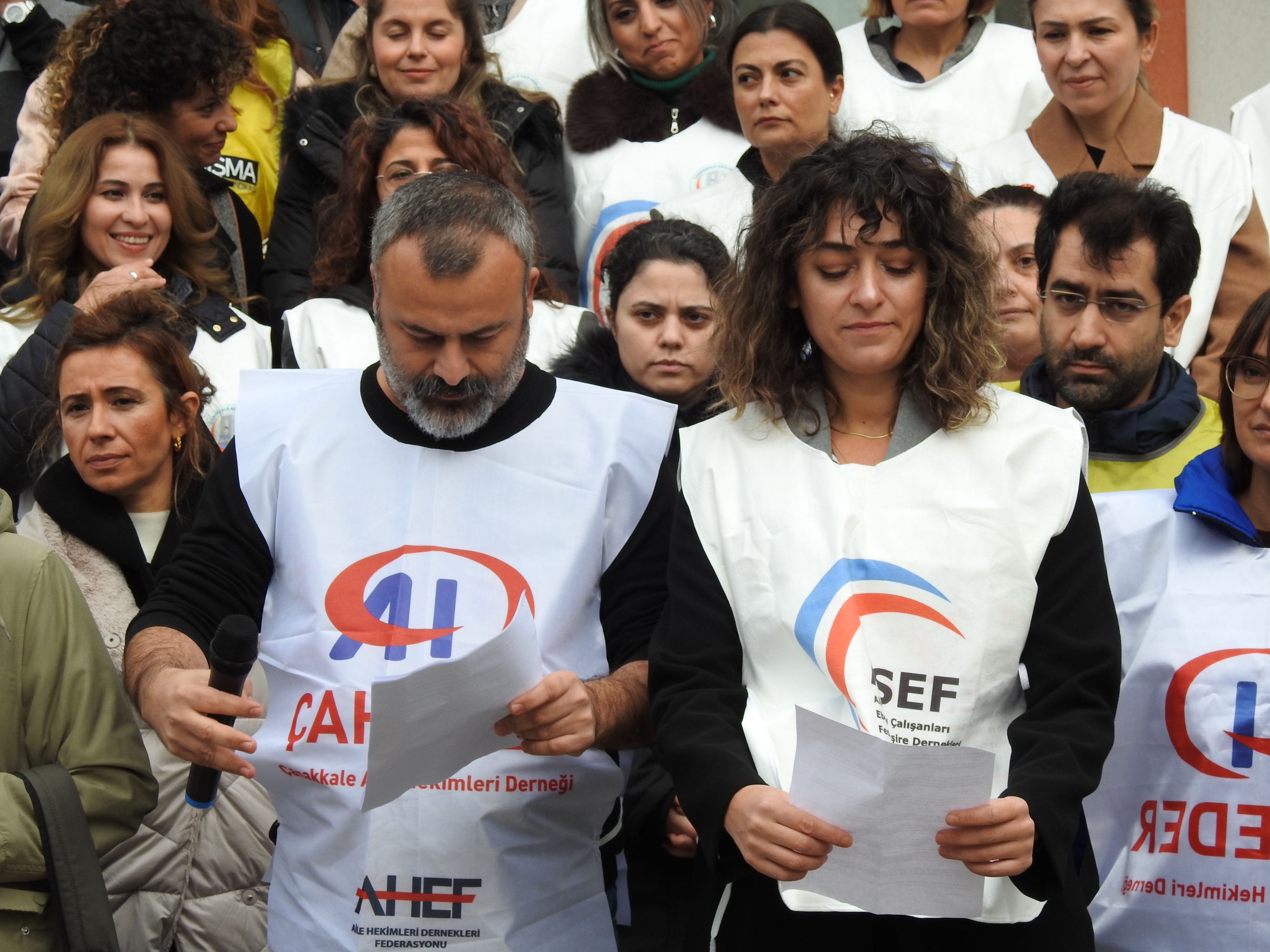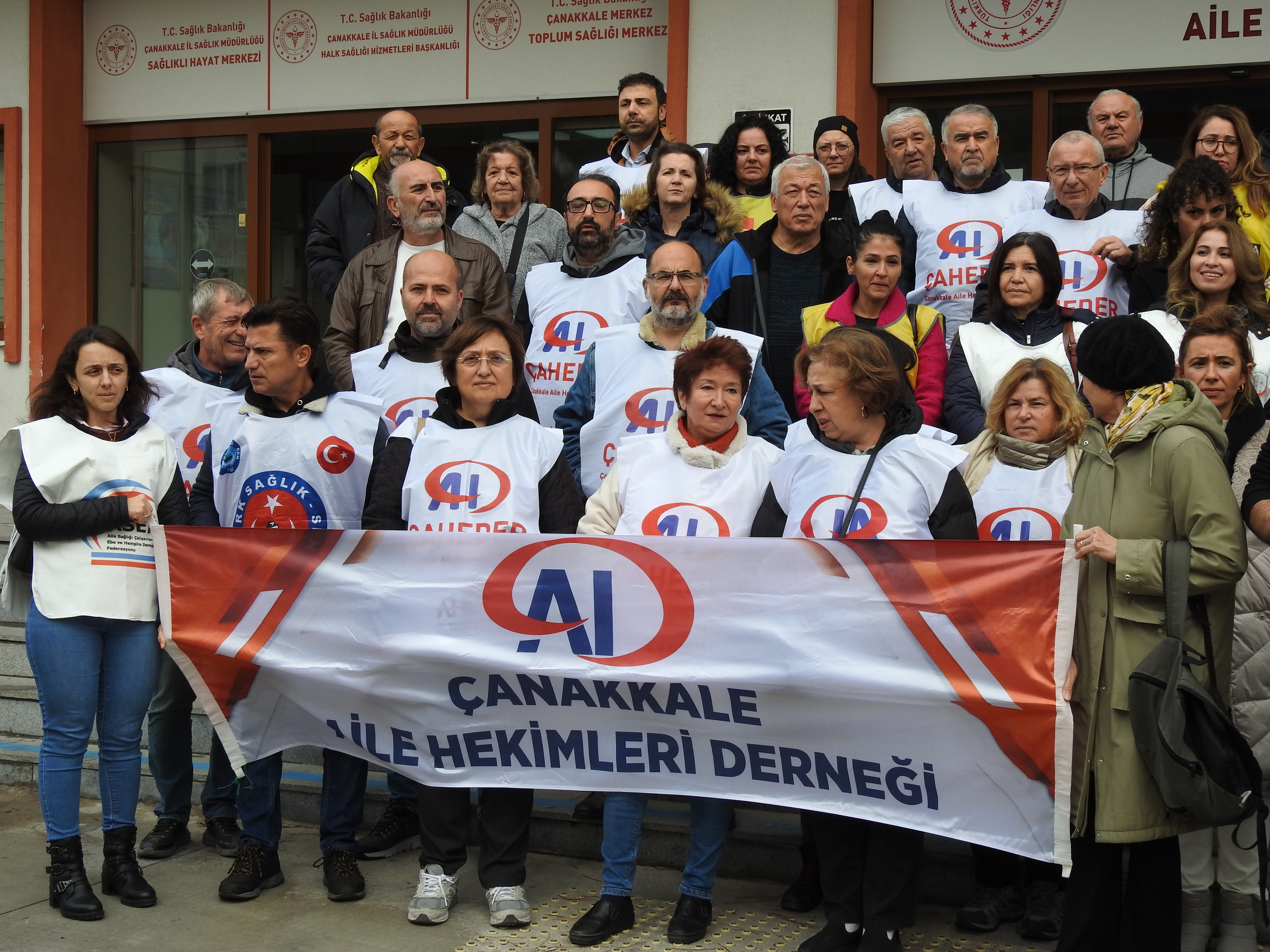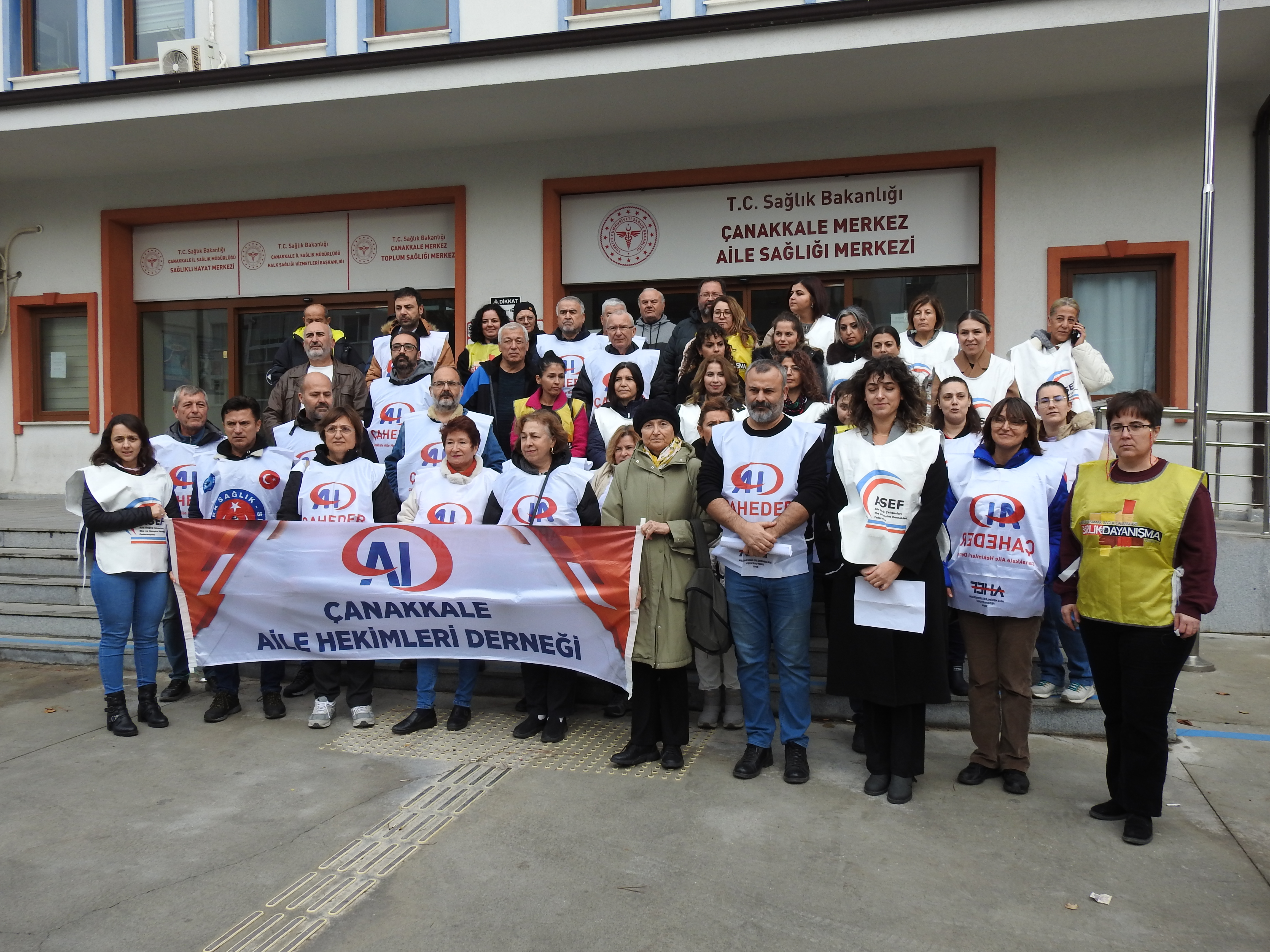 Aile Sağlığı Hekimleri Derneği Başkan Yardımcısı Levent Göktaş ve Çanakkale Aile Sağlığı Çalışanları Ebe ve Hemşireleri Derneği Başkanı Hilal Nalinci, Çanakkale Aile Sağlığı Merkezi önünde bir basın açıklaması düzenleyerek, Sağlık Bakanlığı’nın yeni yönetmeliklerinin meslek onurunu hiçe sayarak aile hekimlerini ve çalışanlarını baskı altına aldığını ifade ettiler. Hilal Nalinci, yaptığı açıklamada, "Bu sisteme kimse çalışmak istemiyor" diyerek şunları söyledi: “Aile Sağlığı çalışanları olarak 2-6 Aralık tarihlerinde iş bırakıyoruz. Çünkü, bizler bu sistemde hak ettiğimiz değeri görmüyoruz. Aile sağlığı çalışanları olarak halkımıza en sık ve en çok temas eden meslek grubu olmamıza rağmen, sağlık hizmeti sunarken karşılaştığımız zorluklar her geçen gün artıyor. Sağlık Bakanlığı, meslek onurumuzu hiçe sayarak, gereksiz iş yükü ve baskılarla bizleri zor durumda bırakıyor.”