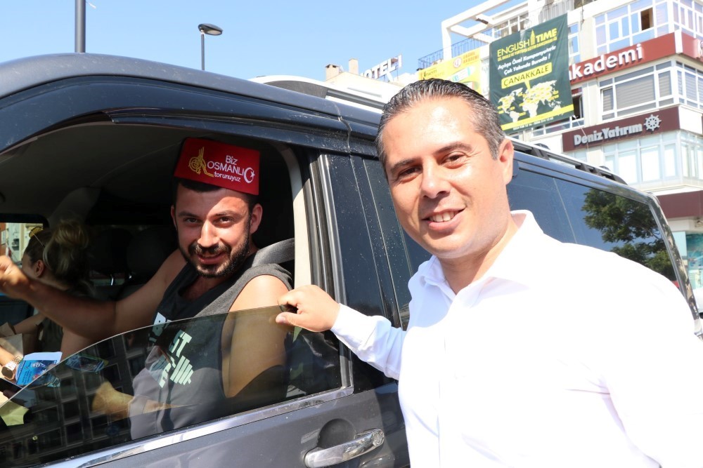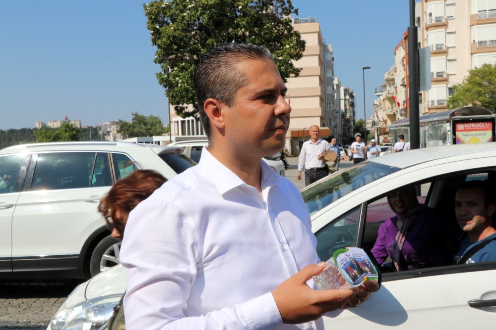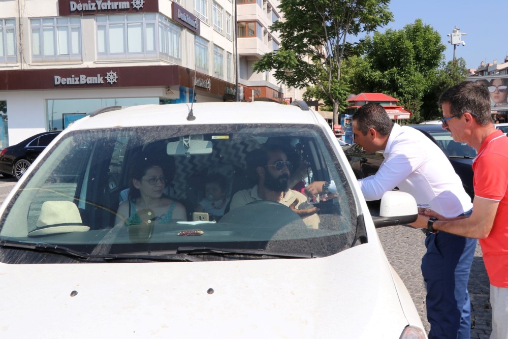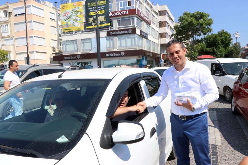 AK Parti Çanakkale İl Başkanı Avukat Gültekin Yıldız, bayram dönüşlerinde feribot kuyruğunda bekleyen vatandaşlara su dağıttı.