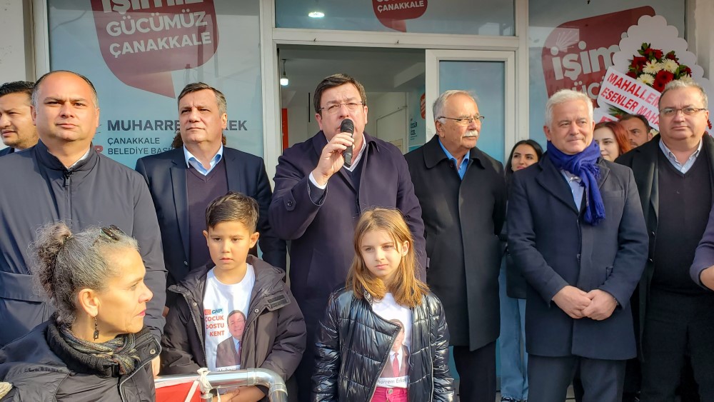 CHP Çanakkale Belediye Başkan Adayı Muharrem Erkek'in Esenler Mahallesi Seçim Ofisi açıldı. Açılışta konuşan Erkek, "Biz birileri gibi deprem toplanma alanlarını, yeşil alanları imara açmayacağız. Sahillerin yapılaşmaya açılmasına izin vermeyeceğiz." dedi.