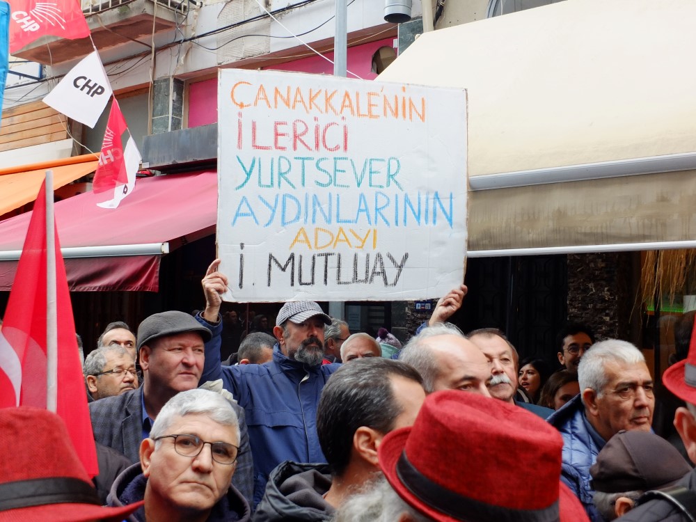 Mutluay konuşmasının sonunda partililerin ellerindeki üzerinde “ Önseçim “ Yazan pankartları da değerlendirerek “4.500 üyemizin önüne sandığı koyalım” dedi. Mutluay konuşmasının sonunda şu ifadelere yer verdi. “Partimiz bir kurultay yaptı. Ve iki genel başkan adayımız şu andaki yani mevcut genel başkanımız ve bir önceki genel başkanımız da partiyi demokratikleştirme sözü verdi. Evet değişim demokratikleşerek olmalı. Bunun sonuna kadar savunucusuyum. Hangi noktada, hangi yerde, hangi il ve ilçede ya da merkezde eğer demokrasi yoksa biz evimizin önünü süpüremiyorsak, bu ülkeye de demokrasiyi vadedemeyiz. O Onun için şu ana kadar Çanakkale il belediye başkan aday adaylığı başvurusunda bulunan benim dışımdaki üç aday içinde ön seçim yapalım. Partimizin Çanakkale merkezde 4.500 üyesi var. Yedi mahallede 4.500 üyesi olan partimizin önünde sandık koyalım. Üyemizin iradesi neyse sonuna kadar saygı gösterelim dedim. Ve üç aday adayı olarak biz ııı bu talebimizi ileten dilekçemizi Sayın İlçe Başkanımıza teslim ettik. Ve genel merkezimize gönderilmek üzere teslim ettik. Bu talebimizi de ısrarcıyız. Cumhuriyet Halk Partisi üyesi kendi yöneticisini seçecek. Kendi adayını seçecek iradeye sahip olmalıdır. Buradan tekrarlıyorum.” dedi.