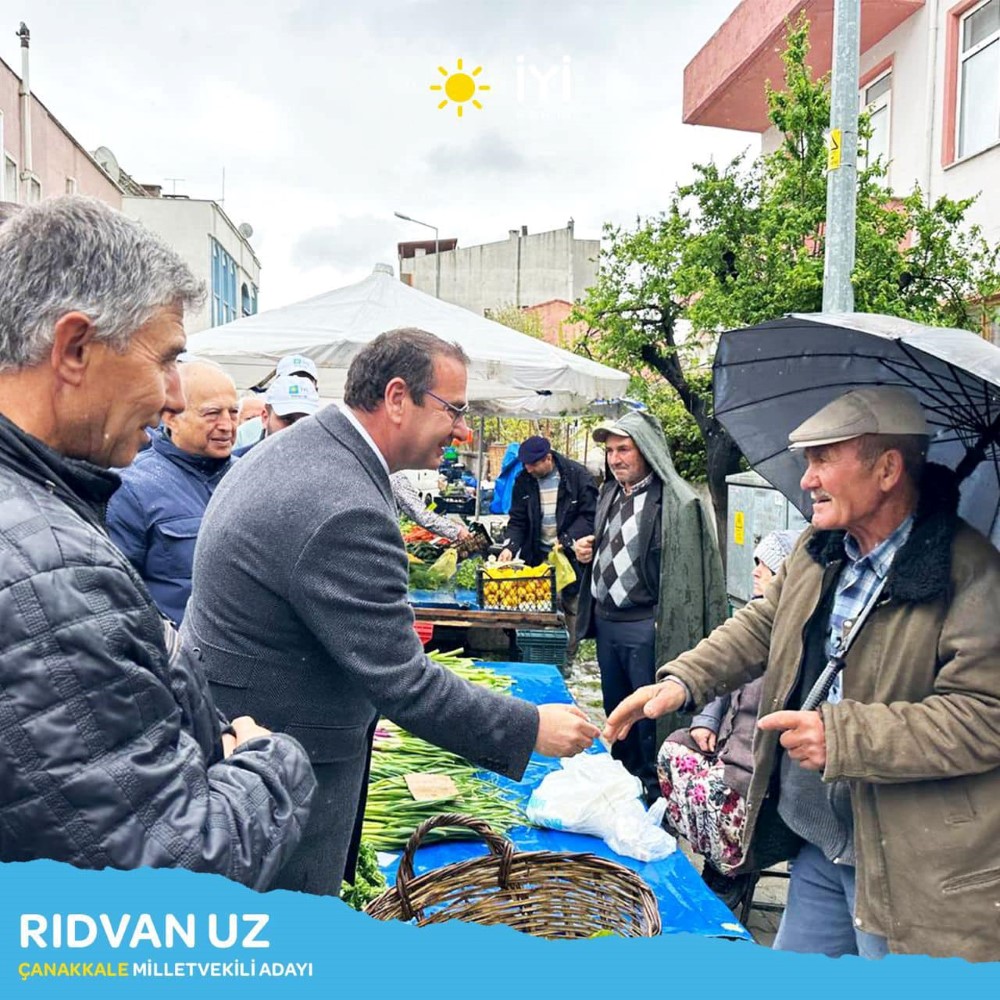 İYİ Parti Çanakkale Milletvekili Adayı Rıdvan Uz, Millete hizmet etmek için sabırsızlıkla beklediklerini dile getirdiği açıklamasının devamında “Biz çiftçiye, kırmızı mazot desteğiyle, ÖTV ve KDV'siz mazot vereceğiz. Evet. Desteklemelerimizi Avrupa'da ve dünyada olduğu gibi yüzde yüz yetmişin üstüne çıkararak tekrar biz köylerden üretimden yeniden başlayacağız. O yüzden diyoruz ki köy okullarını yeniden açacağız. O yüzden çok büyük bölümü diyoruz ki biz kapanan belde belediyelerini tekrar açacağız. Yani tekrar biz yeniden en alttan başlayarak yukarı doğru destekleyerek esnaf desteklenmiş olacak. Sanayimiz nefes almış olacak. Dolayısıyla Türkiye yeniden herkesin güvenli ve huzurlu sistemi olan bir ülke haline gelecek. Kurumsuzluktan kurtulacağız. Üçüncüsü de yarınlarımız ve evlatlarımız için onları Emre Akbaki geldiğinde yanımızda olsunlar istiyoruz. Avrupa'dan, dünyanın öteki ucundan, cenazemize yetişemeyen evlat istemiyoruz. O yüzden evlatlarımıza Türkiye'de huzurlu nefes alabileceği ve ekonomik anlamda özgürlüğünü yaşayabileceği bir Türkiye oluşturacağımız için istiyoruz. Bu bağlamda da halkımıza güveniyoruz. Yirmi bir yıllık iktidar var. O iktidara yirmi bir yılın sonunda gelinen noktaya bakacaklar. Bir köyde bir muhtar seçeriz. Muhtar beşinci dönem seçildiyse o muhtara evine gidip camını çalarız ya ‘bir işimiz var. Kalk artık gözünü seveyim. Şu muhtarlığı aç da halledelim’ deriz. Ama yeni seçilen bir muhtar arkadaşımız gider sabahleyin muhtarlığı yıkar. Sandalyeyi kapısının önüne koyar. Bir vatandaşın işi düşse de onu çözeyim diye heyecanla bekler. Biz İYİ Parti olarak bu heyecanı yaşıyoruz. Bu heyecanla şu anda tutuşuyoruz. Ve halkımızdan bize bu yetkiyi vermesini bekliyoruz, talep ediyoruz” dedi.