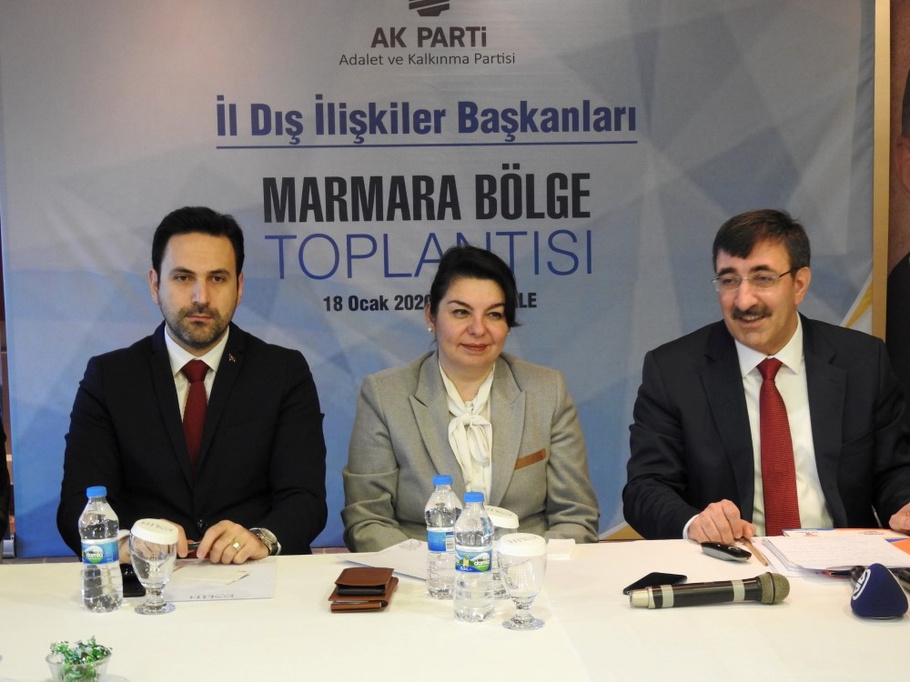 AK Parti Genel Başkan Yardımcısı ve Dış İlişkiler Başkanı Cevdet Yılmaz “AK Parti İl Dış İlişkiler Başkanları Marmara Bölge Toplantısı”na başkanlık yapmak ve katılımcılara sunum yapmak için Çanakkale’ye geldi. Kolin Otel’ de gerçekleştirilen toplantıya AK Parti Çanakkale Milletvekili ve AK Parti Genel Merkez Kadın Kolları Tanıtım Medya Başkanı Julide İskenderoğlu, AK Parti Çanakkale İl Başkanı Naim Makas, Dış İlişkiler Başkan Yardımcıları Zafer Sırakaya ve Emre Ete, Genel Merkez Kadın Kolları Dış İlişkiler Başkanı Ümmügülsüm Ümütlü, Genel Merkez Gençlik Kolları Dış İlişkiler Başkanı Cengizhan Güngör, Ak Parti İl Başkanı Naim Makas, Ak Parti İl Kadın Kolları Başkanı Gülsüm Üstün, İstanbul, Balıkesir, Bursa, Edirne, Bilecik, Kırklareli ve Çanakkale il dış ilişkiler başkanları katıldı.