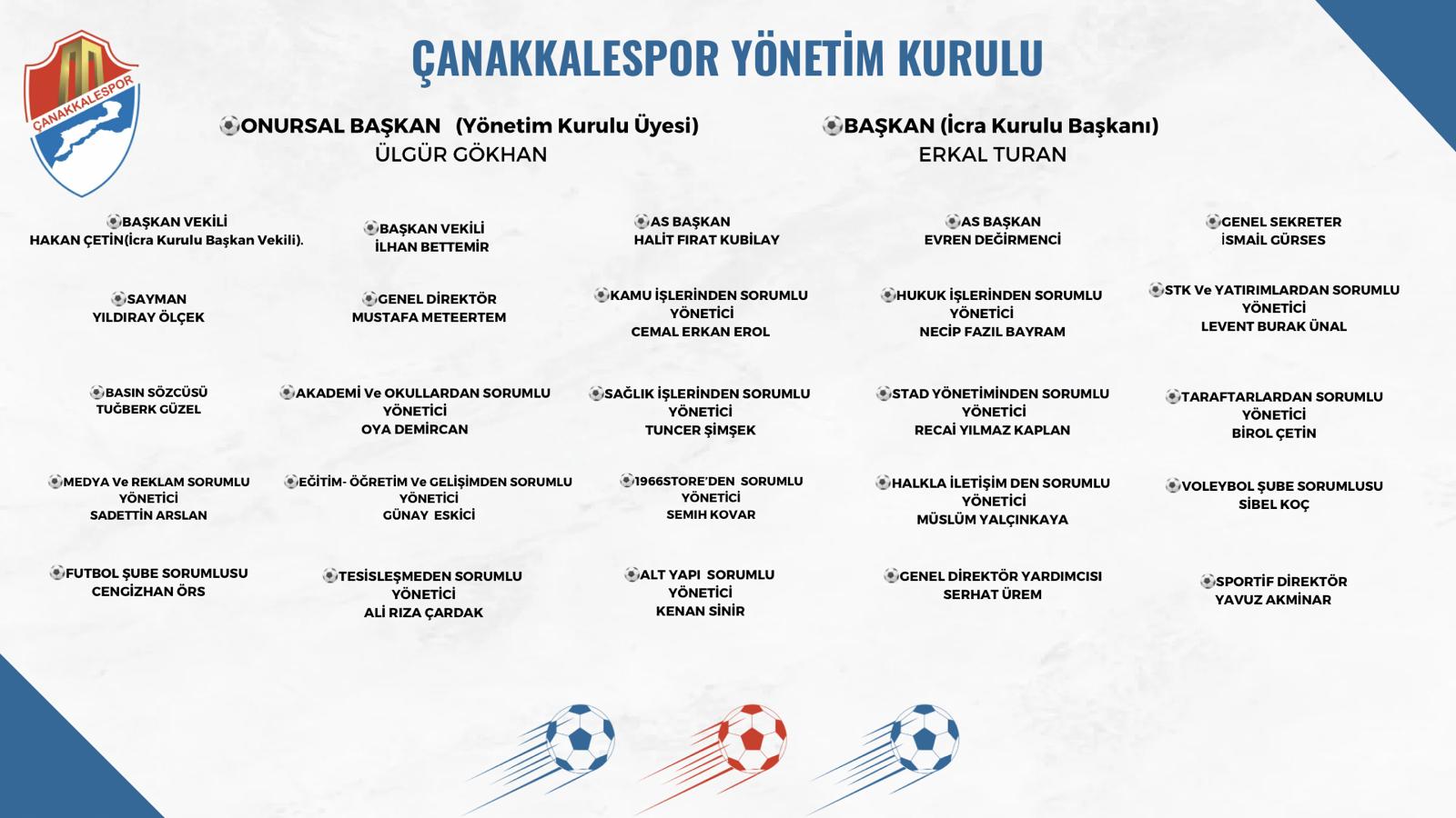 Çanakkalespor Basın Sözcüsü Tuğberk Güzel Çanakkalespor’ un yeni oluşan yönetim kurulu ile ilgili açıklama yaptı. Güzel açıklamasında yeni yönetimde yer alan isimleri açıklayarak “Çanakkale sevdalılarının bir araya geldiği bir ekipten oluştu” dedi. Güzel açıklamasında şu cümlelere yer verdi. “Geçtiğimiz hafta gerçekleştirmiş olduğumuz kongremizde yeni yönetim kurulu üyelerimizi belirledik ve görevlendirmelerimizi yaptık. Hiç bir siyasi parti veya kuruluşun güdümünde olmayan sadece Çanakkale adını daha yükseklere taşımak adına mücadele eden Çanakkalesporumuzun 2024-2025 sezonu yönetim kadrosu her kesimden ve her alandan Çanakkale sevdalılarının bir araya geldiği bir ekipten oluşmuştur. Yeni yönetim kurulumuz ve görevleri şu şekilde oluştu.