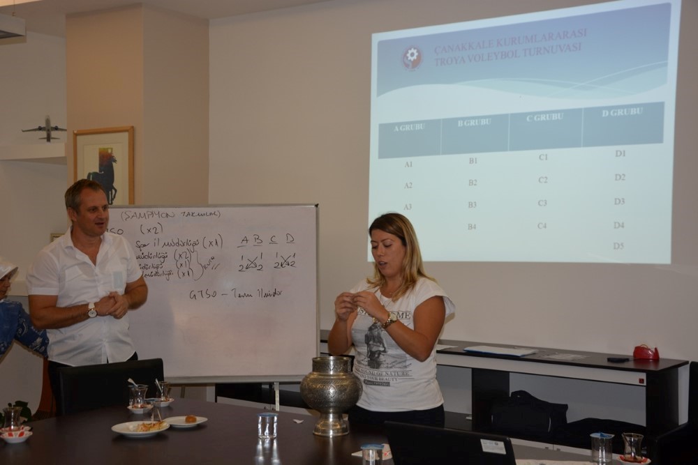 Çanakkale Ticaret ve Sanayi Odası organizasyonunda, Çanakkale ili merkezinde faaliyet gösteren kurum, kuruluş, sivil toplum örgütü ve derneklerin katılımlarıyla gerçekleştirilecek “Çanakkale Troya Kurumlararası Karma Voleybol Turnuvası” ‘nın statü ve fikstür toplantısı yapıldı. ÇTSO Kongre Fuar Merkezinde yapılan toplantıda; Çanakkale Belediyesi, Gelibolu Tarihi Alan Başkanlığı, Çanakkale İl Milli Eğitim Müdürlüğü, Çanakkale İl Tarım ve Orman Müdürlüğü, Çanakkale Aile, Çalışma ve Sosyal Hizmetler Müdürlüğü, Çanakkale İl Sağlık Müdürlüğü, Çanakkale Orman Bölge Müdürlüğü, Çanakkale Barosu, Çanakkale Ticaret Borsası, Kepez Belediyesi, GESTAŞ, Çanakkale Liman Başkanlığı ile ÇATOD, ÇATİOD, ROÇDAK Derneklerinin temsilcileri, Genel Sekreter Sema Sandal ve Proje Uzmanı Gökhan Doğru, ÇTSO Voleybol Antrenörü Engin Tunç, Takım Kaptanı Tahsin Uysal ve Didem Kıray hazır bulundu.