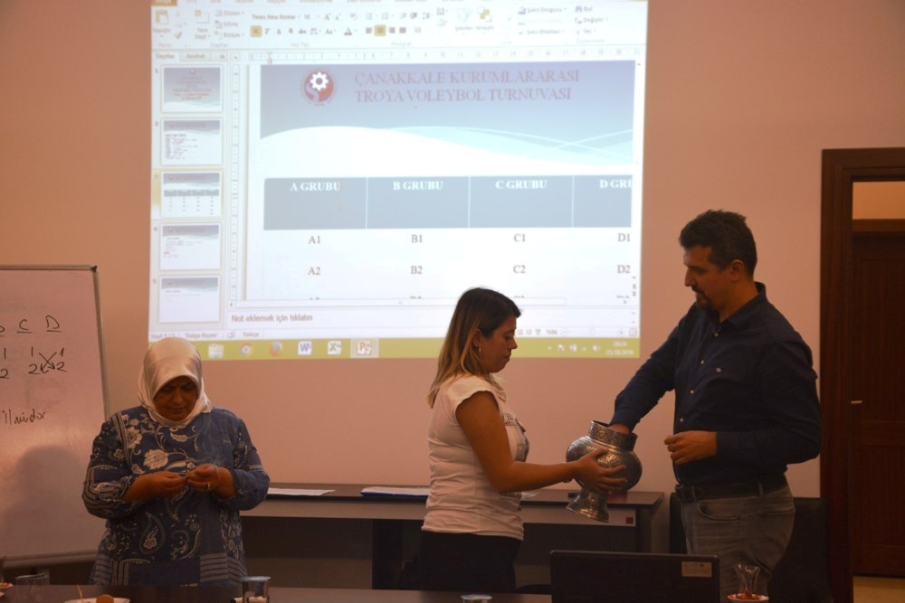 ÇTSO Genel Sekreteri Sema Sandal toplantıda yaptığı konuşmada; “Yönetim Kurulumuz, kurumlar arası dayanışma ve kaynaşmaya büyük önem veriyor. Bu amaçla bu yıl ilkini düzenleyeceğimiz Çanakkale Troya Kurumlararası Karma Voleybol Turnuvası’nın kalıcı yerel bir Turnuva olmasını istiyoruz. Karma Voleybol Turnuvamızda; ailelerin, eşleri çocukları ve yakınları ile gelip maçlarımızı izleyerek güzel ve keyifli vakit geçirecekleri bir ortam yaratmayı hedefliyoruz. Turnuva maçlarımız 19 Kasım 2019 Salı günü başlayacak. Maçlarımızı Çanakkale Anafartalar Spor salonunda Salı ve Cuma günleri yapacağız. Turnuvamızı Nisan 2020 tarihinde geniş katılımlı bir piknik organizasyonu ile tamamlamayı hedefliyoruz.” diyerek katılım sağlayan ve Turnuva’nın gerçekleşmesinde destek veren Çanakkale İl Gençlik ve Spor yetkililerine teşekkür etti. Toplantıda, Didem Kıray tarafından Turnuva Fikstürünün okunması ve katılımcıların görüşlerini beyan etmesinin ardından kura çekimi yapılarak Turnuva Grupları belirlendi.