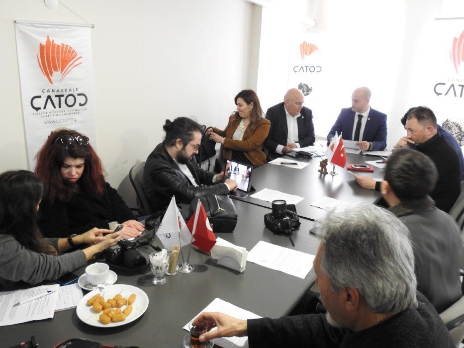 Çanakkale Turistik Otelciler ve Yatırımcılar Derneği Başkan Armağan Aydeğer düzenlediği basın toplantısında dernek olarak 2019 yılında ve 20220 yılının ilk ayında yapılan çalışmalar ile ilgili basın mensuplarını bilgilendirdi. Çok sayıda basın mensubunun katıldığı toplantıda Aydeğer Çanakkale turizmi için yaptıkları çalışmaları ve bu çalışmaların yansımalarını değerlendirdi. ÇATOD olarak katıldıkları ve 2020 yılında katılacakları fuarlar, ETSTUR ODAMAX ile yaptıkları işbirliği, Almanya tur operatörleri ile yaptıkları işbirliği konularında ve Türkiye ve Çanakkale turizminin nasıl hareketlendirmek istedikleri konusunda bilgiler veren Aydeğer ilk olarak bacasız sanayi diye adlandırılan turizmin çok önemli olduğunun altını çizdi. Aydeğer ” Çanakkale ili ekonomimizde Turizm, Tarım ve Üniversiteye bağlı gelişen ticari hayat çok önemli bir yer tutmaktadır. Turizm dediğimizde 54 yan sektöre doğrudan veya dolaylı can veren, tüm hizmet sektörleri ile istihdamın %15’ine yakınını sağlayan bir sektörden bahsediyoruz. 2018 yılında 46 milyon turist 29,5 Milyar USD döviz geliri sağlamıştır. Diğer taraftan dikkatinizi çekmek istediğimiz bir husus 2019’un ilk 9 ayındaki verilere göre bu gelirin yalnız %10,66’sını Konaklama sektörü almakta olup, %19 yeme içme, %13,5 ulaşım, %19’a yakını kişisel harcamalar, %26 sı paket tur harcamalarıdır.” dedi.